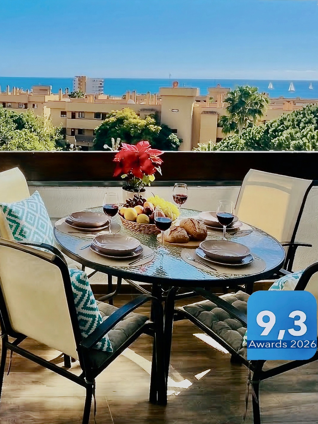 Luminoso y espacioso apartamento 2BR/2BA con vistas panorámicas al mar, una gran terraza soleada y barbacoa incorporada. Capacidad para 6 personas con un cómodo sofá cama. A poca distancia en auto de la playa, los restaurantes y las tiendas. Disfruta de una cena al aire libre, hermosas puestas de sol y un ambiente costero relajante. Ideal para familias, parejas o amantes del golf, cerca de los mejores campos de golf y un club pádel cercano. A solo 30 minutos del aeropuerto de Málaga. ¡La escapada perfecta a la Costa del Sol!