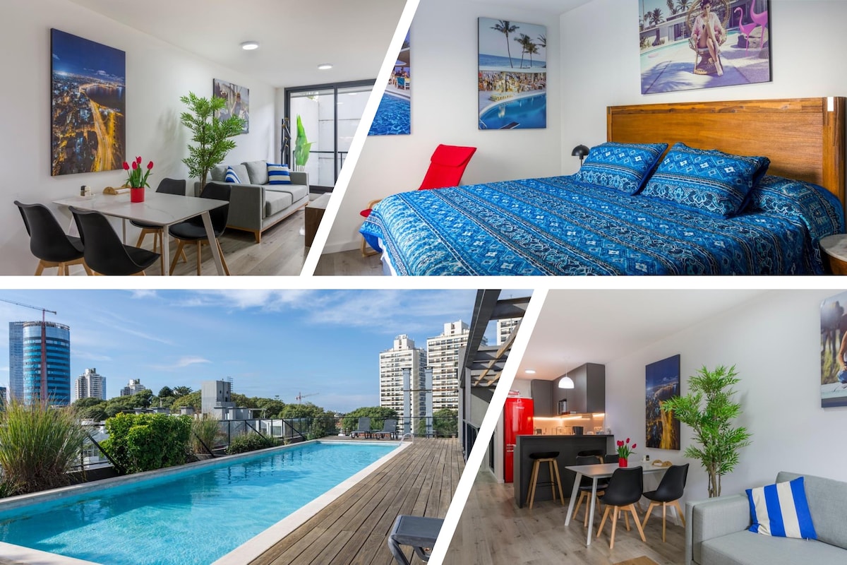 Relajate en este espacio tranquilo y elegante a dos cuadras de la playa con todos los servicios cerca. Monoambiente luminoso y confortable, con balcón y espacio coworking. Sofá cama, Smart TV 50 pulgadas. Cocina integrada con lo necesario para cocinar. Amplio baño completo. Aire Acondicionado frió/calor. Toallas e insumos como cortesía de bienvenida.Estadías de 28 días o más el consumo de eléctrico incluido en la tarifa es de hasta 2000 pesos uruguayos, la diferencia será abonada por el huésped