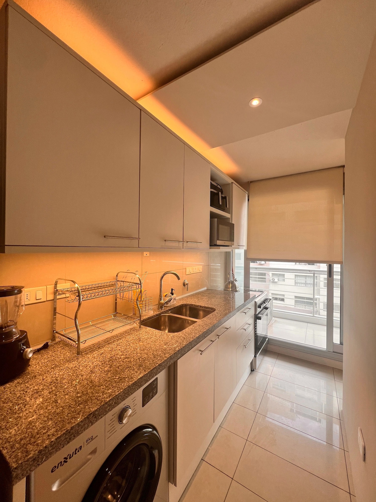 Te dará pena irte. Te recomiendo leer los comentarios de los huéspedes. Monoambiente impecable, luminoso, tranquilo, totalmente equipado. Te dará la sensación de ser el primero que usa todo. El edificio cuenta con lavadero, gimnasio y rooftop con reposeras y mesas, limitándose su uso a los huéspedes. Magnífica ubicación: a una cuadra de la playa; cerca de todo tipo de comercios, restaurantes, y centro comercial. Estacionamiento no tarifado en la calle.