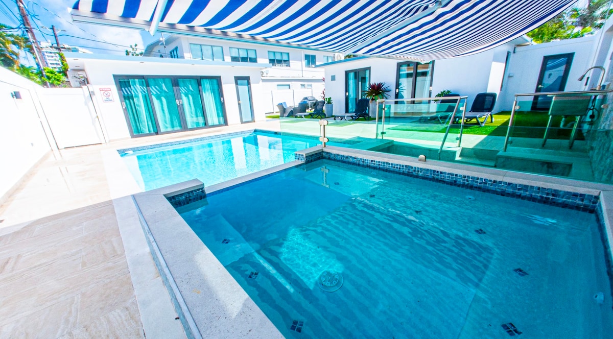 Villa Azure es tu estancia elevada en Puerto Rico, ubicada en una comunidad privada y cercada entre Ocean Park Beach, Calle Loíza y Punta Las Marías. Se ha considerado cada detalle para crear una experiencia fácil y cómoda, ya sea que viajes con tu familia o con un grupo. Lo más destacado de Villa Azure que te encantará: 1. Piscina privada + terraza con zona de bar al aire libre para descansar durante el día y colgar por la noche. 2. 5 amplios dormitorios diseñados para la privacidad 3. Cocina completa, comedor y sala de estar 4. Garaje para autos