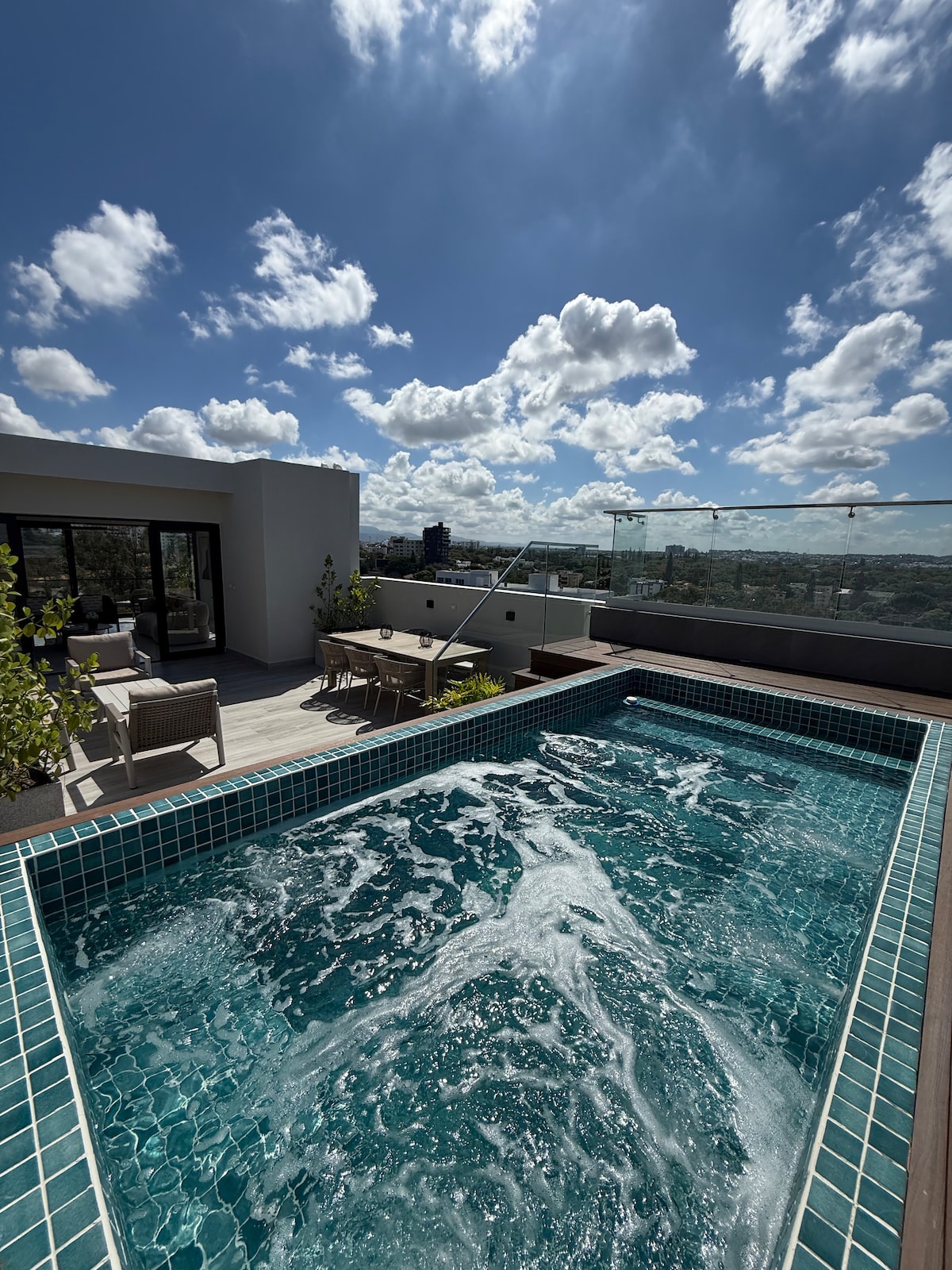 ¡Bienvenido al apartamento más moderno de Santiago! Lujo, privacidad y excelente ubicación. Lo que te encantará: • Jacuzzi Privado: Grande y exclusivo. • Outdoor: Terraza con muebles de ratán, BBQ y área verde. • Interior: Smart TV 75", AC y diseño de revista. • Cocina y Bar: Espacio elegante y equipado. • Baño Premium: Estilo ultra-moderno y texturizado. Ideal para parejas en escapada romántica o viajeros que buscan la máxima calidad. ¡Reserva tu experiencia!