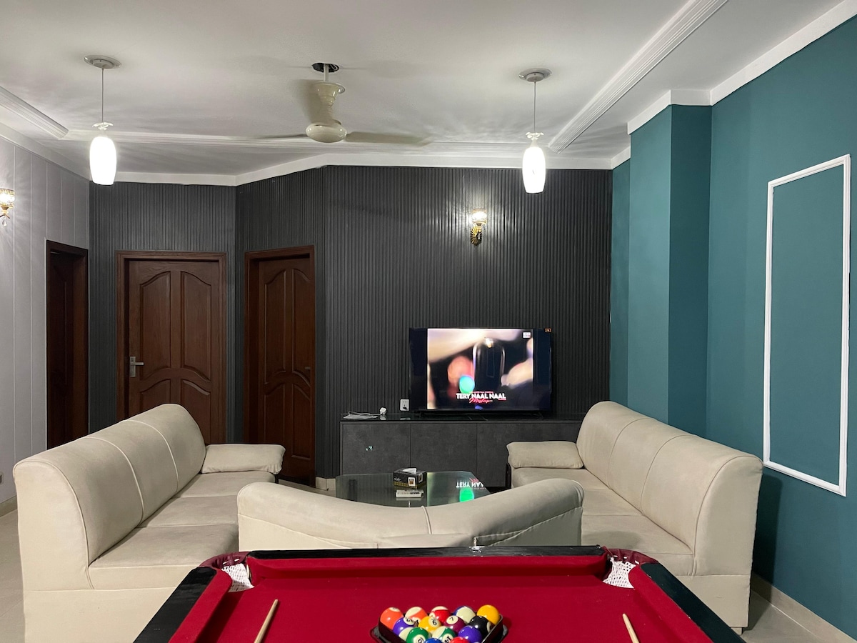 Disfruta de una escapada familiar relajante en un destino tranquilo con impresionantes vistas a las montañas. Puedes elegir entre actividades como pescar en Lakeview y visitar las fuentes danzantes en Parkview. Explora una variedad de restaurantes, parques, un zoológico, gimnasios y un aviario con deliciosos restaurantes. Cerca, el Hospital Farooq y las tiendas locales hacen que sea conveniente pedir comestibles y productos frescos. ¡Promete ser una experiencia inolvidable para todos!