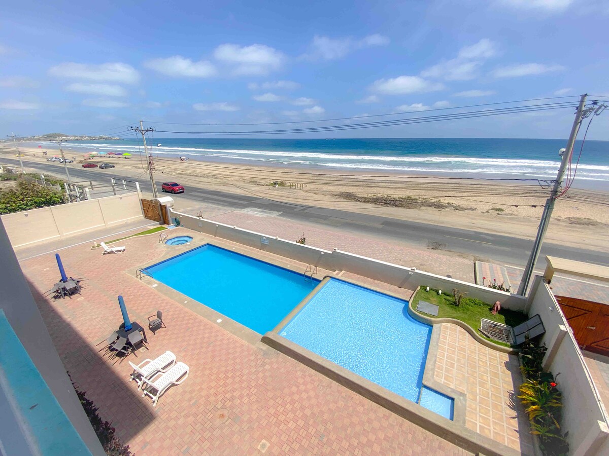 Departamento frente al mar, con piscina y jacuzzi.