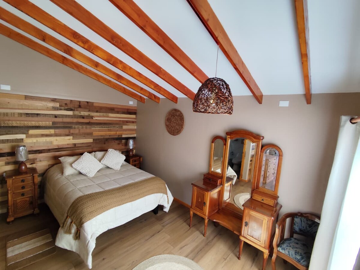 Este alojamiento rustico, tiene mucho espacio para que disfrutes con tu pareja o amistad, descubrirás espacios únicos e inigualables, cada mueble y espacio esta pensado para entregarte una experiencia inolvidable de sensaciones y momentos increíbles, contamos con una tinaja de agua caliente (pago) adicional inserta en una noria cubierta de totoral natural, experiencia única.