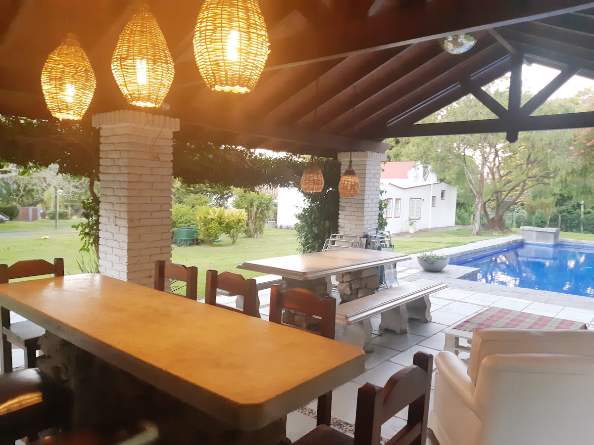 Es un alojamiento ideal para pasar una estadía soñada, para disfrutar todo el año lugar perfecto para parejas, familias y grupos grandes, podrán encontrar cantidad de espacios donde disfrutar. Casa equipada a todo confort, parque con más de 4000m gran piscina climatizada, que hacen mucho mas difrutable, con dos barbacoas grande una abierta y otra cerrada que permite disfutar tanto los dias de calor y los de frío por igual. Entorno con una vejetacion majestuosa y predio totalmente cercado.