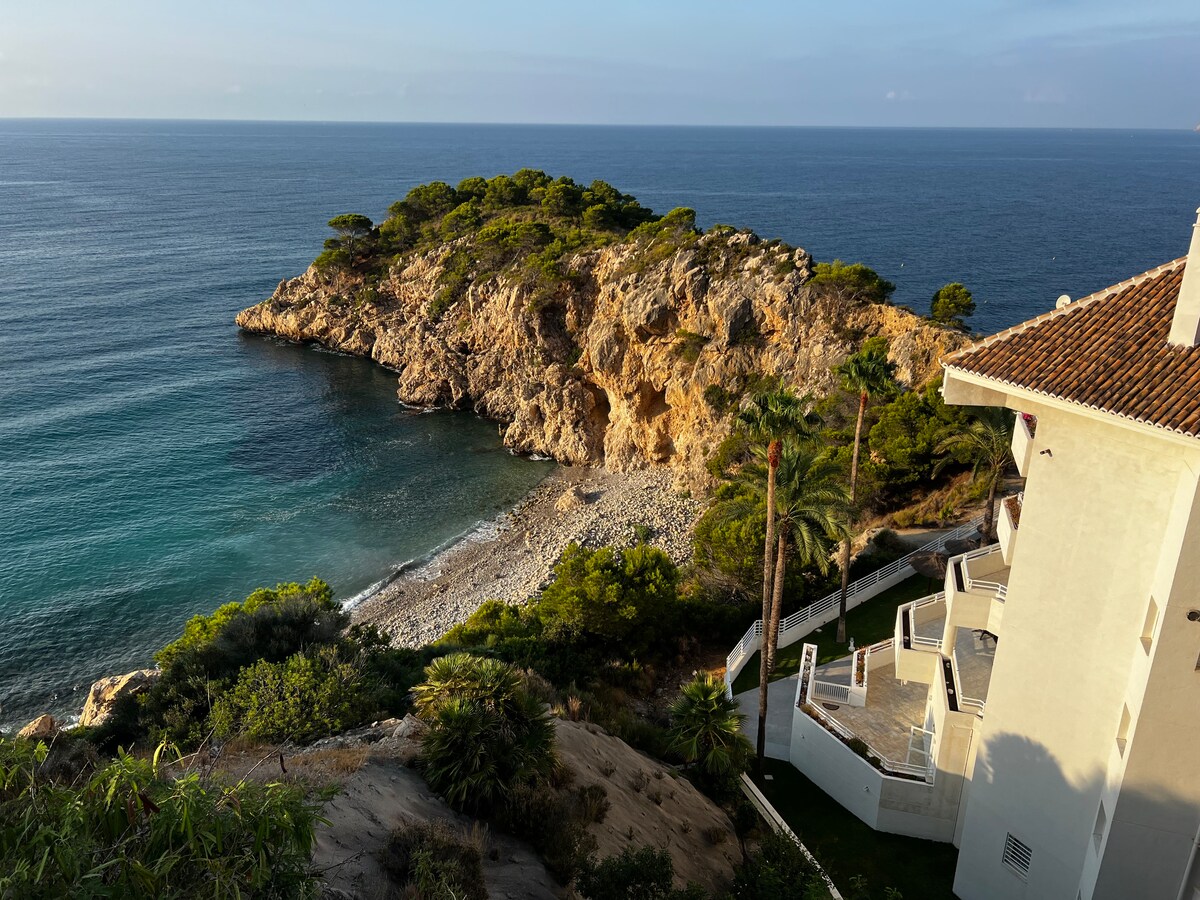 Vive unas vacaciones de ensueño en Mascarat, Altea, en un apartamento con alma mediterránea, diseño elegante y vistas al mar. Disfruta de desayunos al sol, siestas en la silla colgante, cenas al aire libre y puestas de sol inolvidables. Rodeado de calas, tranquilidad y naturaleza, con acceso a piscinas, pádel y garaje privado. Un refugio perfecto para desconectar y disfrutar del lujo junto al mar.