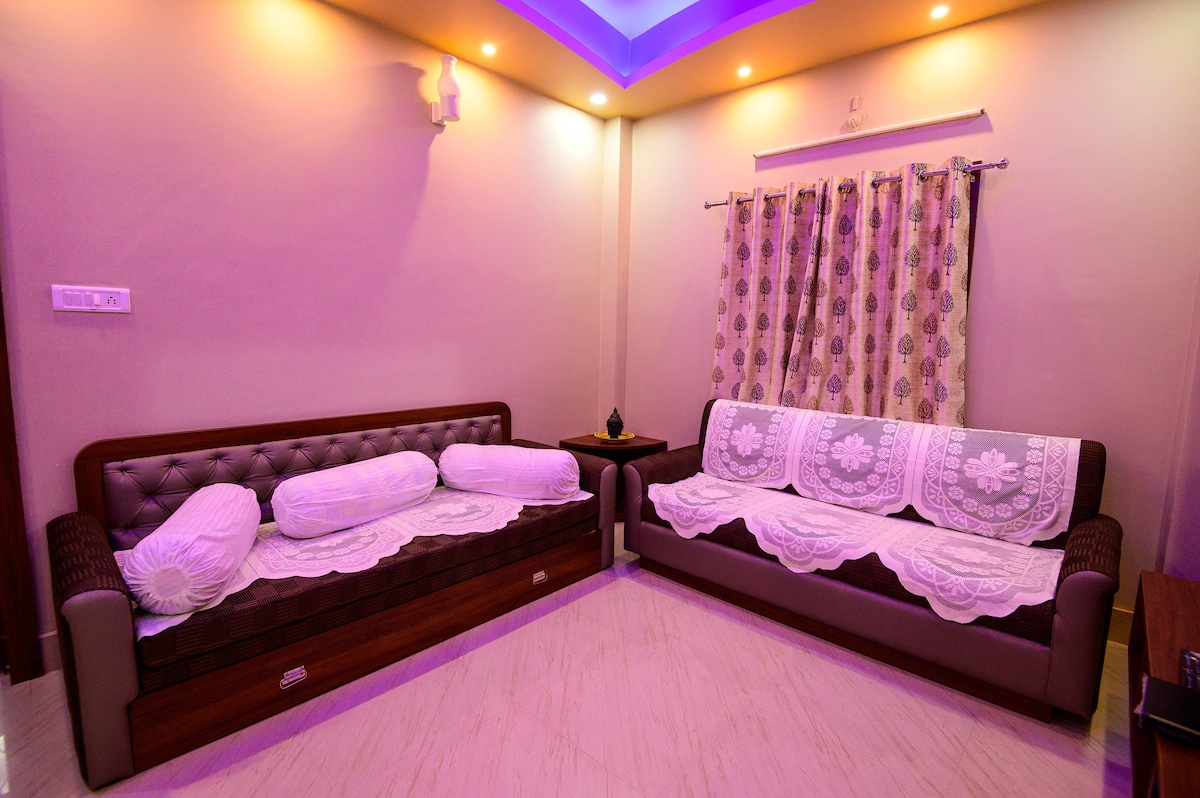 Nuestra propiedad es un apartamento acogedor de 1 BHK, a solo 500 metros a 600 metros de la playa del mar azul de puri. Está ubicado dentro de un hermoso y pacífico centro vacacional. El templo Lord Jagannath está a 3,5 km, el templo Sun en Konark está a 38 km de nuestra propiedad. Nuestro lugar tiene una cocina funcional, lo que significa que puedes cocinar cualquier cosa y lavar tu ropa (lavadora automática) desde aquí(wifi gratuito) y relajarte viendo Ott. el cuidador te ayudará a reservar un taxi, pedir comidas o comestibles, organizar el alquiler de bicicletas o autos .