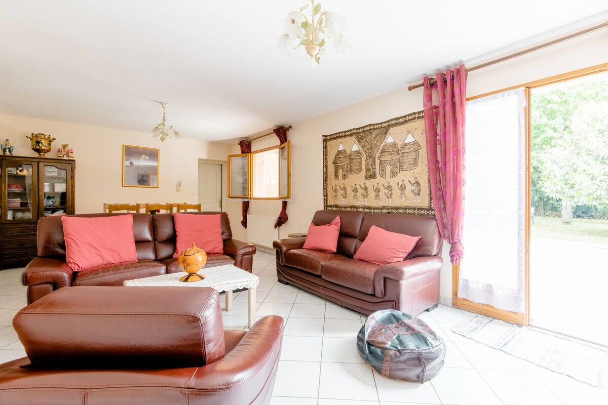 Accesible en transporte, línea 95(40 minutos de Lyon),a 10 minutos del aeropuerto St Exupery,a 10 minutos del estadio de las Luces OL, a 20 minutos de Eurexpo,cerca del Gran Parque de Miribel Jonage,estudio bajo los tejados, independiente,renovado. Tranquilo,luminoso,abierto a un jardín,entorno rural,también está muy bien equipado:Lavavajillas, Lavadora secadora, microondas, Horno, Máquina Dolce Gusto, Hervidor, tostadora, secador de pelo, plancha... Vivimos al lado y estamos a disposición de los huéspedes.