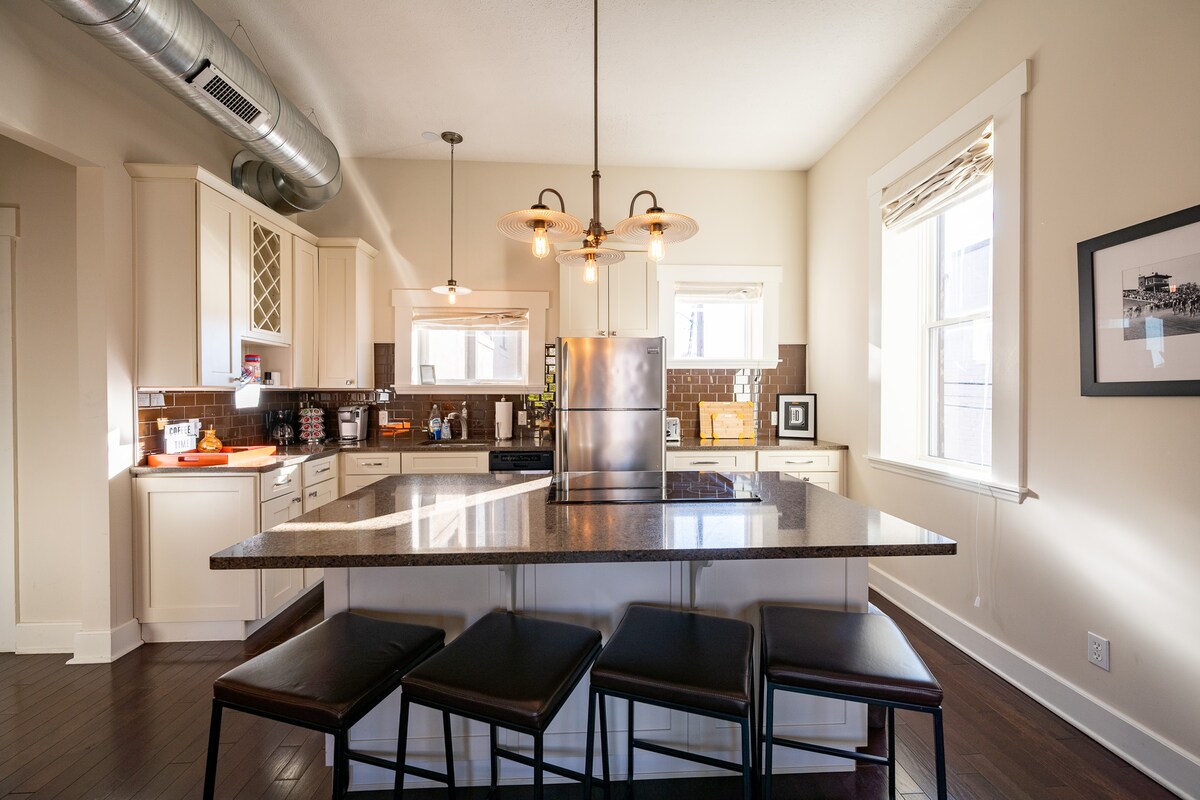 ¡En la intersección de la Universidad DePauw y el centro histórico de Greencastle! Recientemente renovado, nuestro espacioso y moderno loft se encuentra encima de la heladería Scoops y tiene vistas al distrito histórico Courthouse Square de Greencastle. Estarás a solo unos pasos de muchos restaurantes fantásticos, boutiques y tiendas con encanto. ¡Ven y disfruta del pintoresco condado de Putnam durante todo el año! Estamos a pocos pasos del campus de DePauw y cerca de muchos puentes cubiertos. El parque estatal Turkey Run está a poca distancia en coche.