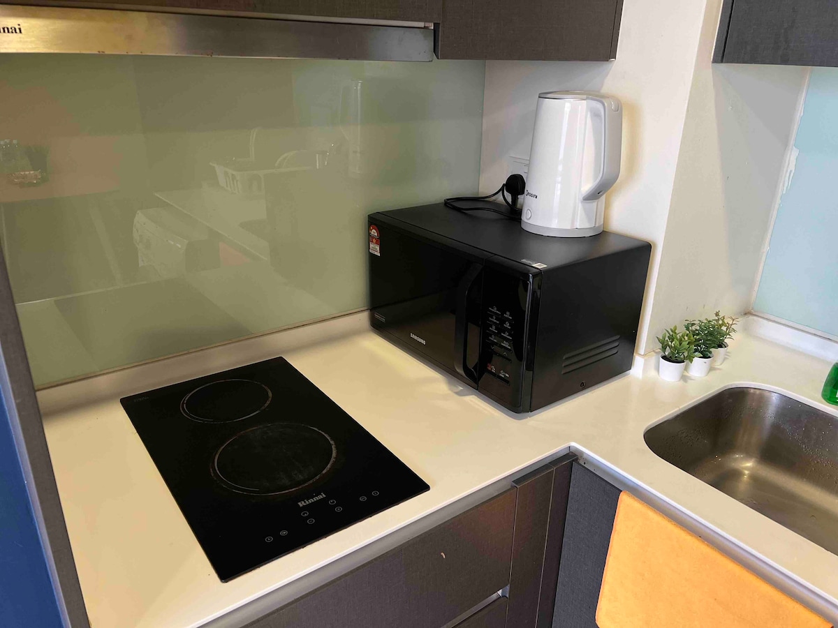 @ Spacious Lakeview Studio Unit. @ piso alto con impresionantes vistas al lago Putrajaya. Televisión inteligente de 45pulgadas instalada con Netflix, Disney+ Hotstar y YouTube. Todo el acceso es gratis. @ Conexión WIFI de banda ancha de alta velocidad. Nevera, horno microondas, freidora de aire, fogón, hervidor de agua y utensilios de cocina para uso básico en la cocina. @ Lavadora con área de secado. @ Cómodo colchón tamaño king. @ Baño limpio con ducha caliente. @ Instalaciones de la casa club @ Filtro de agua Cuckoo @ Entrada con cerradura inteligente