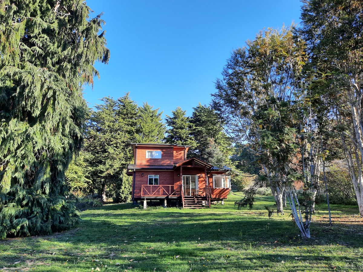Ideal para pescadores, entre árboles nativos y sobre una roca que llega al agua, entre el silbido del viento y el silencio de la montaña...pusimos esta cabaña que ofrece tranquilidad en un paisaje del sur muy poco frecuentado. Senderismo, pesca o simplemente ocio en un lugar que ofrece naturaleza virgen. Acogedora y cómoda con todo lo que se necesita...sólo trae tu caña de pescar, tu libro, tu comida...del resto, me encargo yo. Hay leña, la vecina hace pancito amasado.