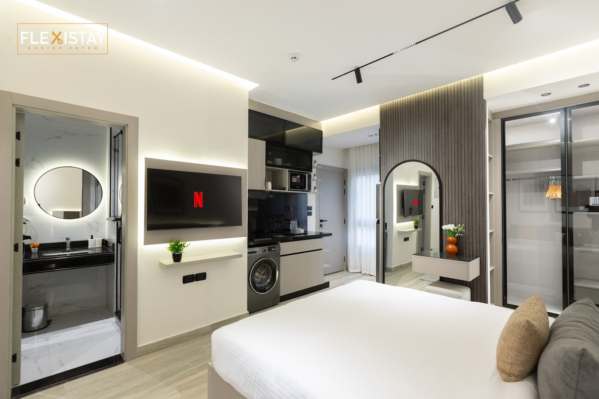 esta elegante habitación se encuentra en el corazón del centro de El Cairo, a 500 metros de la icónica plaza Tahrir. La habitación está a 3 minutos a pie del Museo Egipcio y está rodeada de todo tipo de restaurantes y cafeterías. la habitación cuenta con una cómoda cama tamaño queen, televisor inteligente, aire acondicionado, wifi, minibar , baño privado acogedor y cocina compartida. también proporcionamos desayuno gratuito.