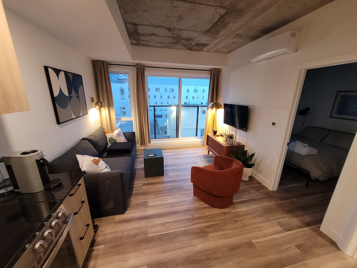 Come and enjoy an unforgettable stay in the heart of the Saint-Roch district in Quebec City. This modern and luxurious condo will charm you as much by its common spaces as by its interior design. ✧️ Indoor Parking included ✧️ Roof terrace with pool, dining area & outdoor fireplace ✧️ BBQ available year-round on the rooftop. ✧️ Fitness room ✧️ Bright and pleasant apartment ✧️ Fast wifi and work space ✧️ Just a 15 minute walk to Old Quebec