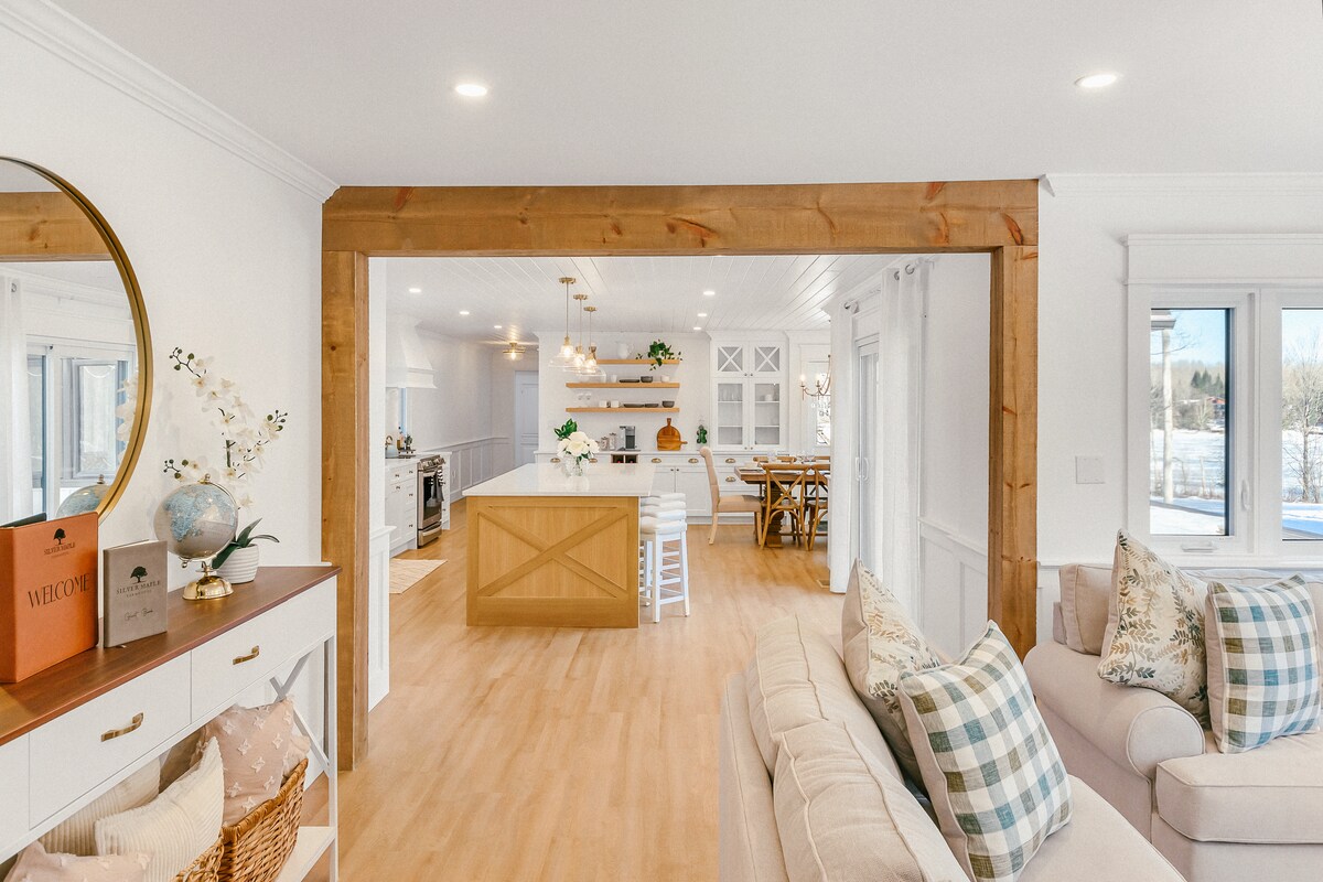 Experimenta la combinación perfecta de encanto del siglo XIX, lujo moderno y vasta belleza natural en Silver Maple Farmhouse. Verdaderamente un hallazgo único a orillas del hermoso lago Kushog con más de 400 pies de prístina orilla del lago, la propiedad también cuenta con 80 acres de bosque privado con más de 2,5 km de senderos marcados reservados exclusivamente para nuestros huéspedes. Ya sea que estés aquí para relajarte, explorar o hacer un poco de ambas cosas, Silver Maple Farmhouse ofrece un refugio inolvidable.