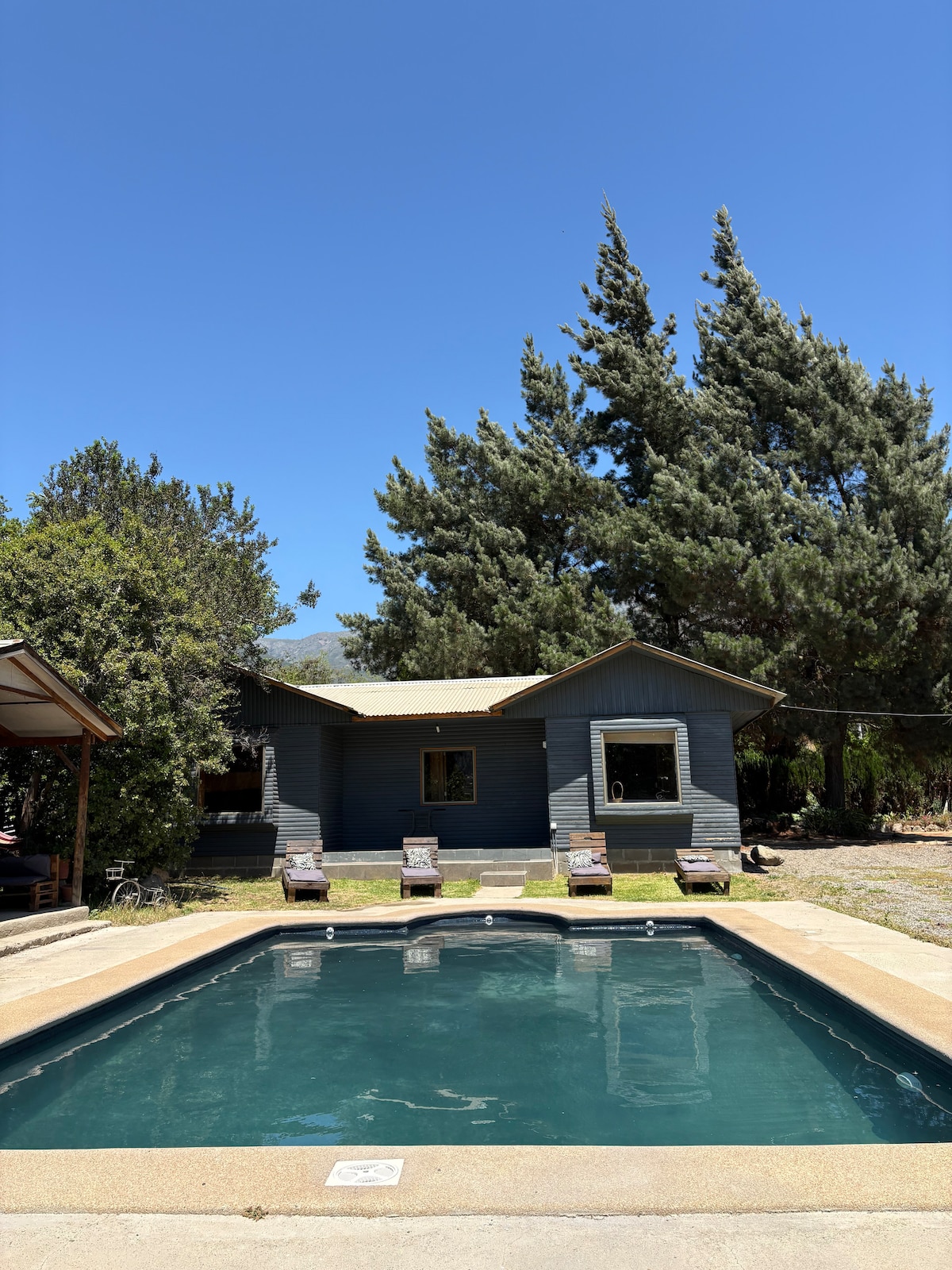 Excelente y tranquila casa privada totalmente equipada con piscina y tinaja privada en Olmué, en una parcela de 2 mil metros². Estamos entre el paradero 33 y 34 del sector de Granizo, a pocas cuadras de la calle principal en un sector familiar. A 2km del centro. La casa tiene 3 habitaciones, 1 matrimonial, 2 habitaciones con 2 camas, 1 baño y cocina totalmente equipada. Contamos con chimenea tipo bosca en la sala de estar y con terraza techada delante de la piscina. Somos pet friendly!!