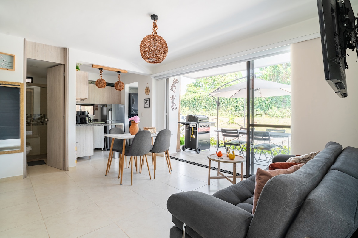 Apartamento con ambiente agradable ideal para descansar y disfrutar las maravillas del Paisaje cafetero muy central para todos los encantos que nos ofrece el departamento del Quindío. Actividades recomendadas para los viajeros en el Quindio: + Salento + Valle del Cocora + Reserva Natural Acaime + Parque del Cafe + Panaca + Parque de los Arrieros + Mariposario del Jardin Botanico del Quindio - Calarca + Mirador del Quindio - Filandia + Parque Nacional Natural de los Nevados