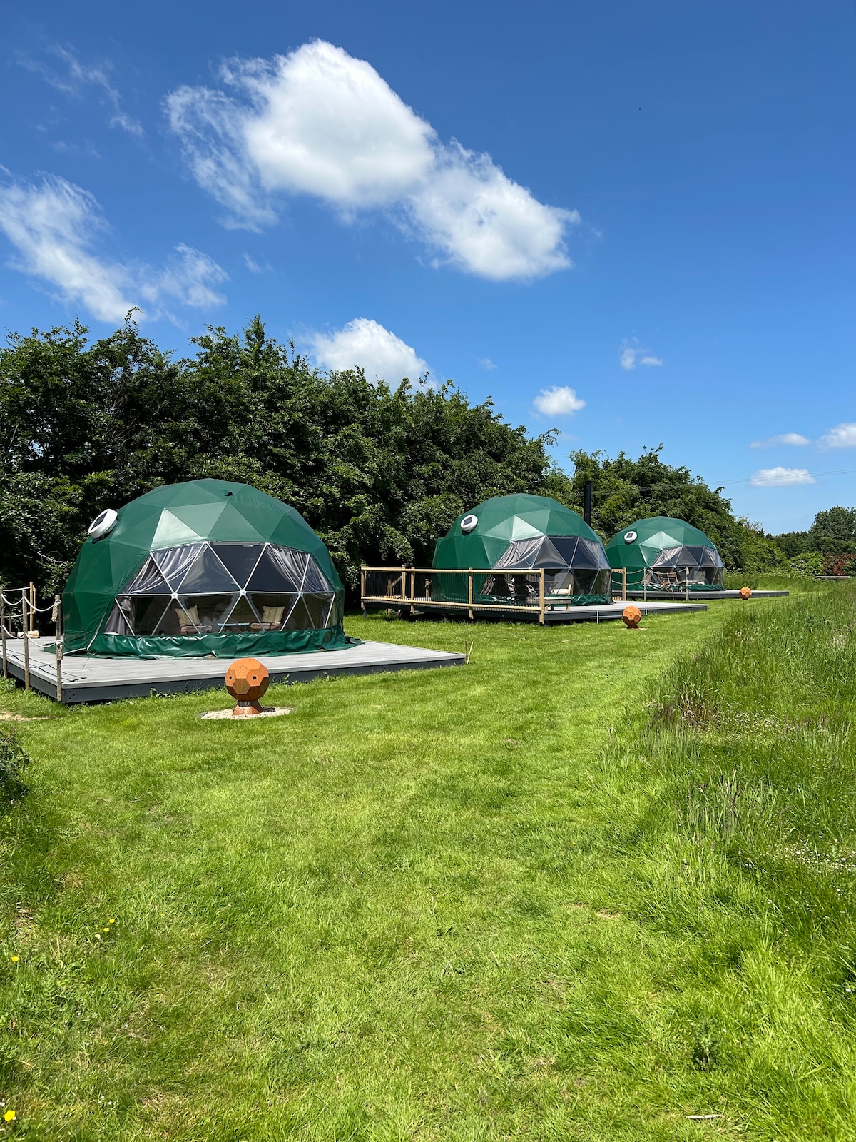 Olive Pod es el mejor refugio en forma de cúpula geodésica, acogedor, privado y pintoresco. Ubicado en una granja frutícola en Surrey, en su propio campo aislado detrás de altos abetos, sin otras cabañas ni carpas en los alrededores. Un destino favorito solo para adultos para pedidas de mano, aniversarios, cumpleaños y lunas de miel; también podemos decorar el alojamiento para tu llegada ✨ El lugar perfecto para relajarse y recargar energías en un entorno natural y tranquilo. Ideal para parejas o amigos. No se admiten bebés, niños ni mascotas.