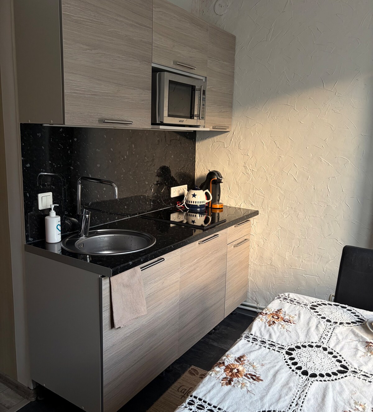 Estaremos encantados de ofrecer alojamiento en casa: nuestra pequeña casa de huéspedes (28 m2) con un gran patio en alquiler para 2 adultos + un niño. ¡Las mascotas también son bienvenidas! La casa es adecuada para aquellos a los que les gusta pasar una noche en un pueblo cerca del bosque, escuchar a los pájaros cantar, en lugar de vivir en una habitación de hotel. ¡Atención! Este alojamiento es un alojamiento en casa y el lugar no es apto para fiestas (no se permiten fiestas de barbacoa).