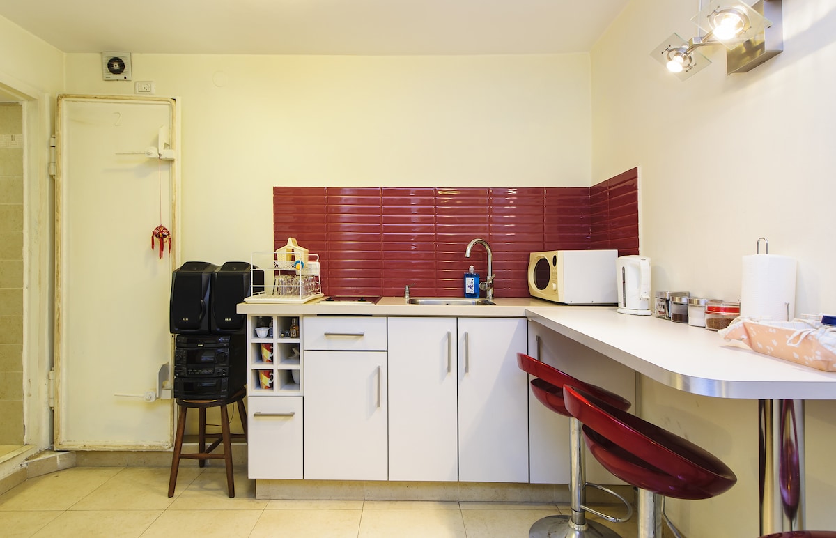 Suite tranquila con jardín en la planta baja en Tel Aviv Disfruta de una estancia tranquila con acceso directo a un jardín ordenado con mesa y sillas, perfecto para relajarse en la ciudad. Internet de fibra óptica ultrarrápido📶, aire acondicionado potente, TV inteligente con muchos canales. Cocina totalmente equipada, baño limpio, lavadora y secadora en el jardín. Estacionamiento gratuito en la calle cerca 🚗 y un refugio antiaéreo compartido y bien equipado a 5 metros de distancia. Ideal para parejas, viajeros solitarios y huéspedes de negocios que buscan comodidad.