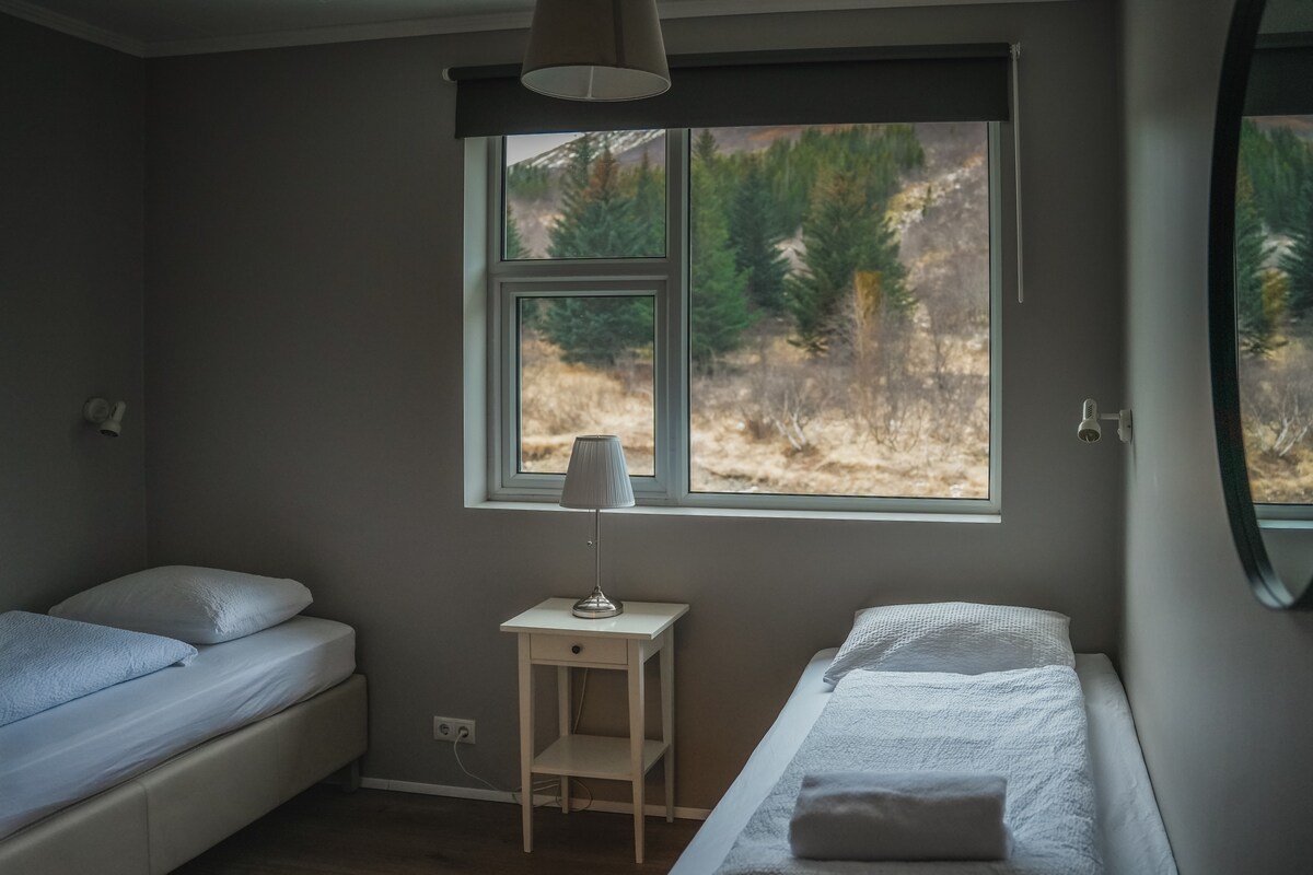 Todas las habitaciones tienen baño privado y nevera con congelador para que los huéspedes guarden bebidas y comestibles, ya que no hay bar tradicional, aunque hay una selección limitada de vinos y cervezas. Relájate en nuestras bañeras de hidromasaje de 15:00 a 21:30 después de explorar la zona. El desayuno es solo continental. Cerca hay restaurantes como Mika, Friðheimar y Vínstofa Friðheima a pocos pasos. La laguna de Laugarás, a 10 km de distancia, también cuenta con un restaurante en el hotel. Ver fotos.