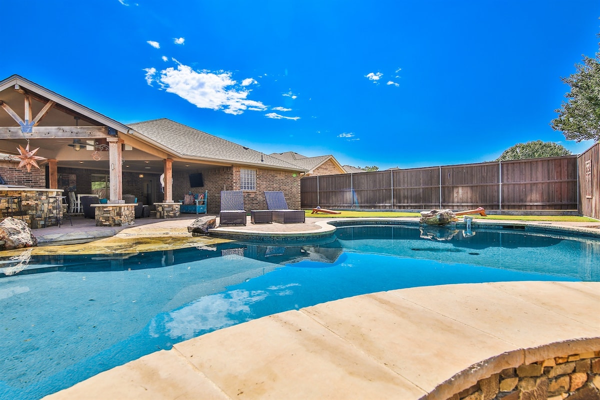 ¡Mantenlo sencillo en esta tranquila y divertida morada! ¡Nuestro objetivo es que te relajes y despegues todo el tiempo mientras disfrutas de las comodidades! - TV ENORME de 75pulgadas con televisión Samsung y WIFI rápido. - Mesa de billar. - Jacuzzi bajo un GRAN patio trasero cubierto - Parrilla de gas con barbacoa. - fogón con juegos de patio. - sofá queen/full/y extraíble - Cocina totalmente abastecida