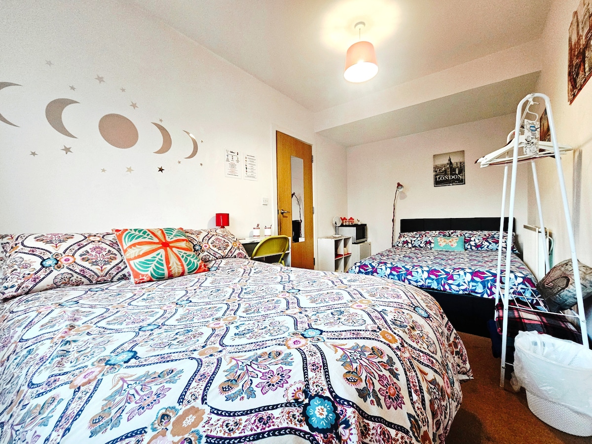 * Habitación doble tamaño king en el ático con baño en un bed and breakfast cerca de Heathrow. * Cama de dos plazas más una cama individual. * Precio estándar para 2 personas, para 3 personas debes elegir 3 huéspedes. * Habitación loft en dos tramos de escaleras. * La tarifa es solo habitación: desayuno inglés £ 14 por persona * Londres a 25 minutos en tren a través de la estación West Drayton a 6 minutos a pie. * Cerca del castillo de Windsor, Brunel Uni, Stockley Park, Legoland y Ascot Racecourse, Harry Potter Studios, Twickenham y Wembley Stadiums, Thorpe Park, Hampton Court y Kew Gardens.