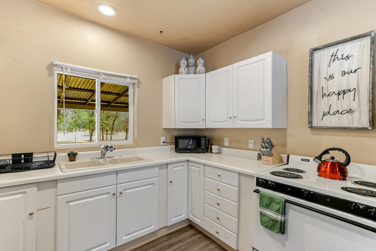 ¡Este estudio privado y espacioso con cocina COMPLETA es tu pequeño trocito de paraíso! ¡Ubicado en diez acres privados y cerrados, puedes experimentar la paz y la tranquilidad del país mientras estás a solo 10 minutos de la Iglesia Bethel, la Universidad Simpson, la ciudad de Redding y la I5! Ya sea que estés buscando una estancia rápida de una noche, un breve retiro de fin de semana o unas vacaciones de varias semanas, ¡te encantará todo lo que ofrece este espacio!