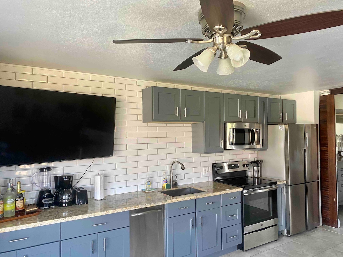 Relájate en este espacio tranquilo y elegante. ¡Este dormitorio real completamente remodelado de 1 dormitorio es hermoso! Las vistas son increíbles. Esta unidad de esquina tiene una cocina completa con una estufa de tamaño completo, un refrigerador de tamaño completo, un lavavajillas y un microondas. El dormitorio tiene una nueva cama tamaño queen con tu propio televisor. El baño está completamente renovado. A solo unos pasos de la piscina recién remodelada y uno de mis restaurantes favoritos de la isla. Sudi 's. La playa cristalina está a pocos pasos.
