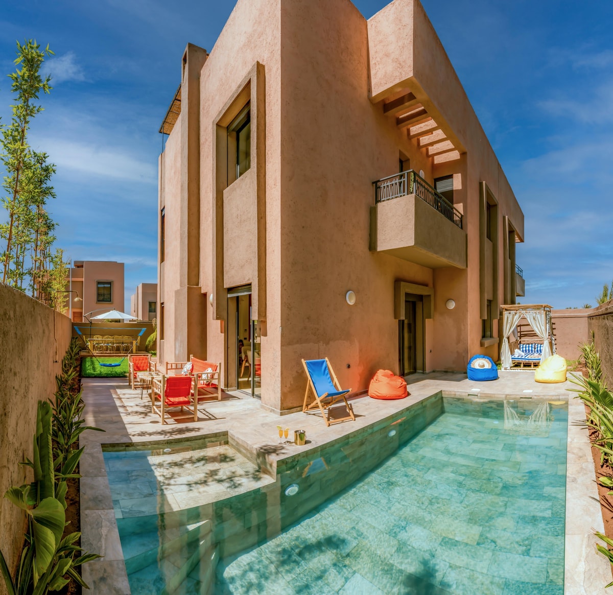 Bienvenido a Dar Louma, nuestro nuevo ecolodge ubicado a solo 10 minutos de la medina y a pocos pasos del campo de golf Amelkis. Ideal para familias y grupos de amigos, nuestra villa cuenta con 4 dormitorios, incluidas 2 suites principales, con capacidad para un máximo de 8 huéspedes. Disfruta de nuestra piscina climatizada y exuberante jardín bajo el sol de Marrakech. Khamissa, nuestra ama de llaves, y Saïd, el cuidador, estarán a tu servicio para que tu estancia sea inolvidable. insta @dar.louma