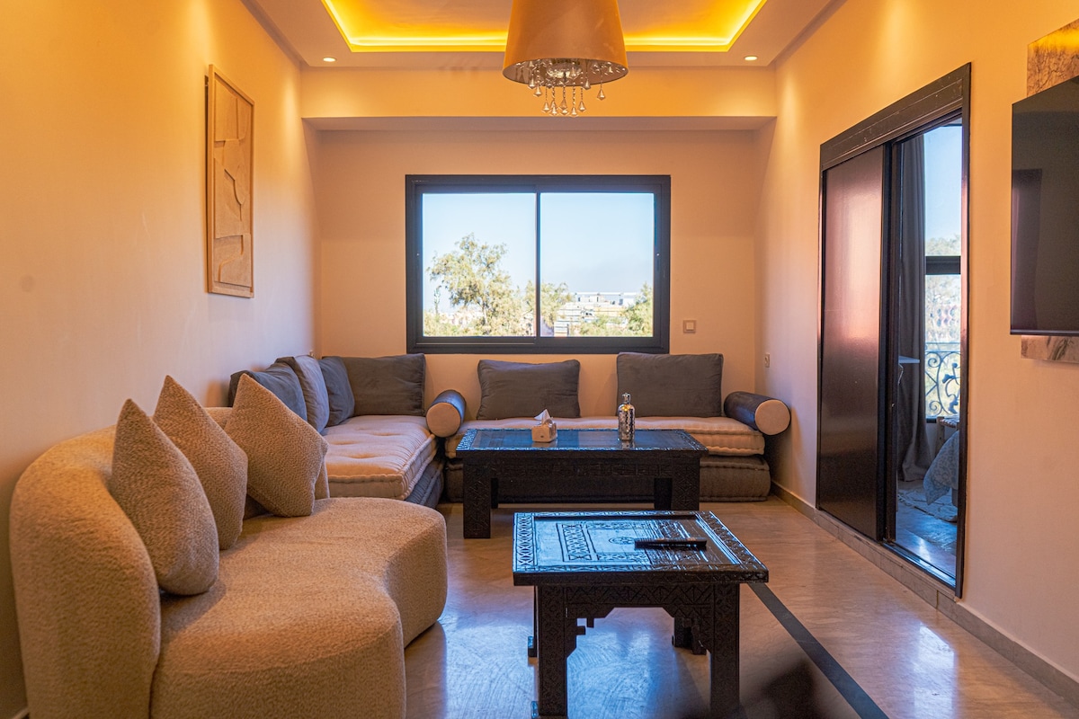 Un departamento cómodo en Marrakech, justo en el centro de la ciudad. Residencia privada, asegurada las 24 horas, los 7 días a ¡Te damos la bienvenida a este apartamento moderno recientemente renovado, perfecto para una estancia agradable en Marrakech! Ubicado en una residencia segura y tranquila, este apartamento ofrece toda la comodidad que necesitas para relajarte y disfrutar de la ciudad.