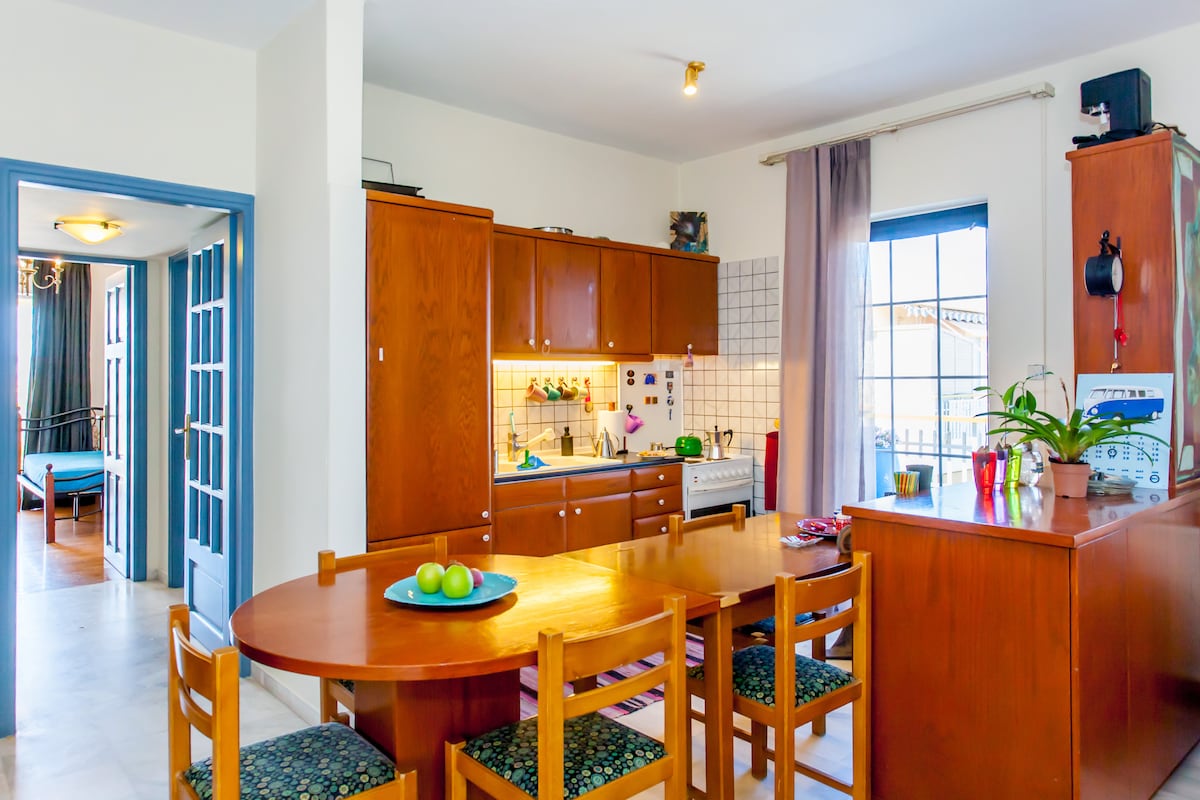El apartamento está situado en la carretera costera de Rétino, en el primer piso de un edificio de apartamentos con un amplio balcón, a 20 metros del mar y a 400 metros del centro. Está totalmente equipado y diseñado para ofrecerle la mejor hospitalidad posible. El espacio del apartamento es único con una cama doble, cocina totalmente equipada con todos los utensilios necesarios, fogones, pequeños electrodomésticos (tostadora, hervidora), lavadora, aire acondicionado y wifi