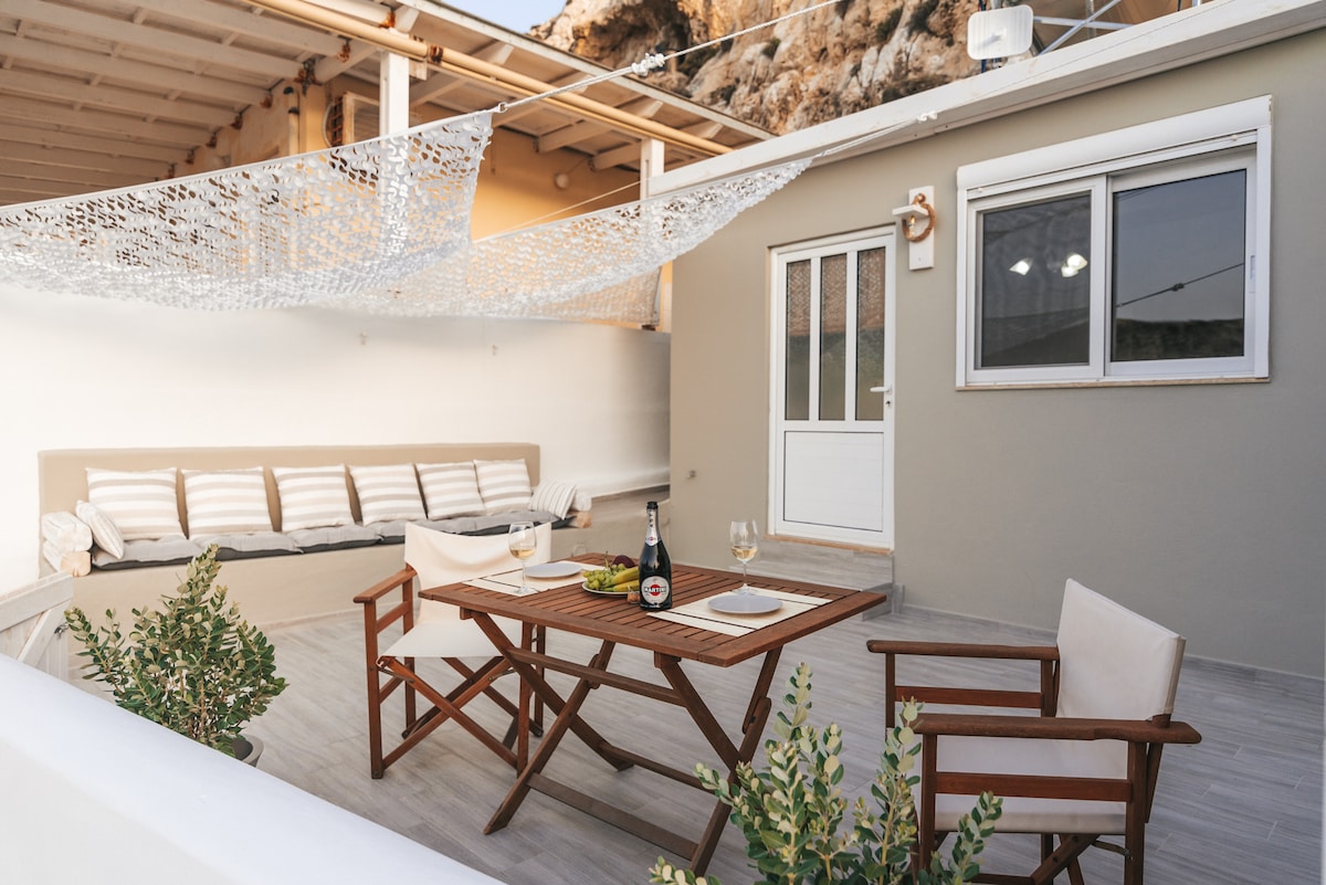 ¡Relájate haciendo una escapada única y tranquila viviendo la experiencia de alojarse en un lugar especial con una vista panorámica a la playa y a las cuevas de Matala!