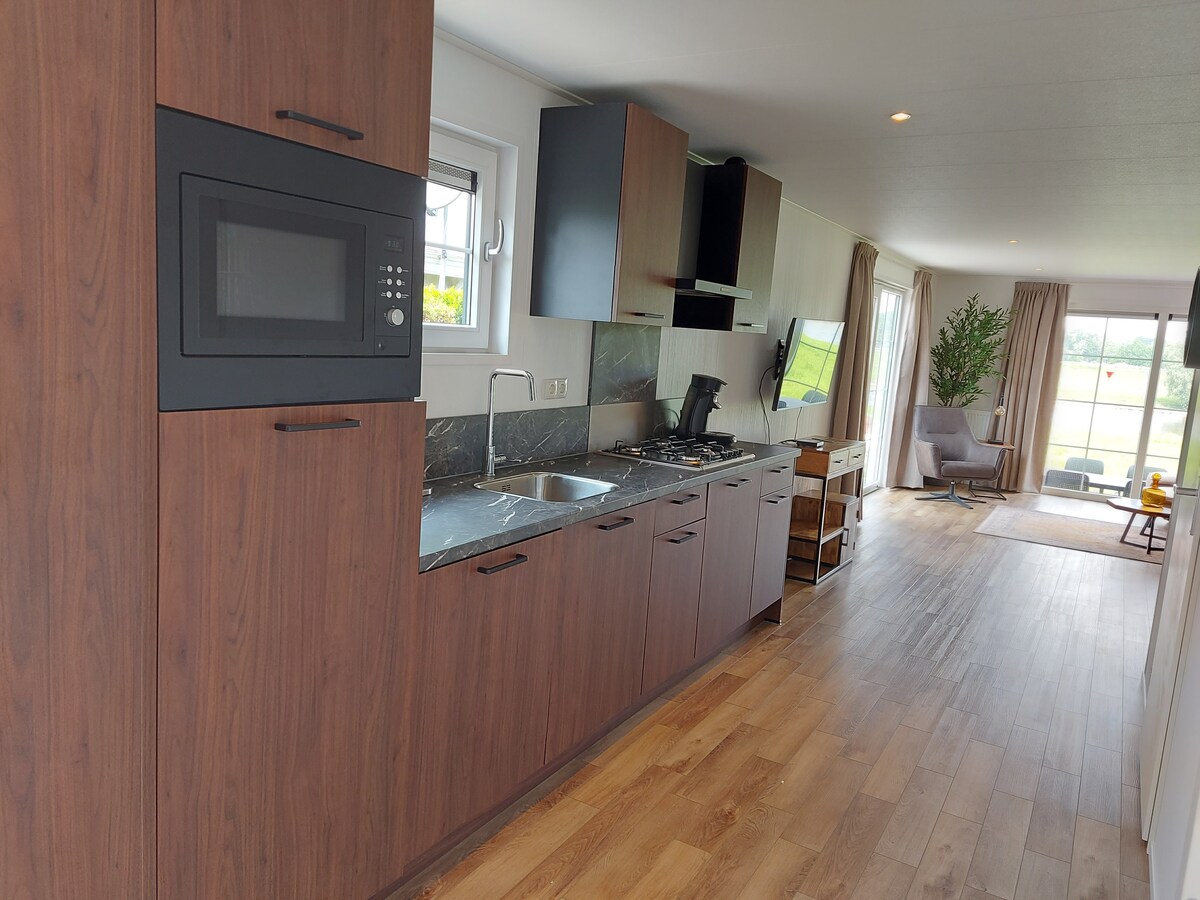 Nuestro B&B está equipado con todas las instalaciones modernas, como una cocina moderna, iluminación Philips Hue, TV inteligente y Quooker. La acogedora terraza se completa con un jacuzzi de lujo y una estufa de leña. El B&B, con un gran jardín privado y vistas despejadas, está completamente separado de la granja por una valla y solo es accesible para usted como huésped. Desde la sauna finlandesa de barril en la terraza contigua se puede contemplar las pintorescas praderas de la ciudad. Un delicioso desayuno a su gusto es opcional.