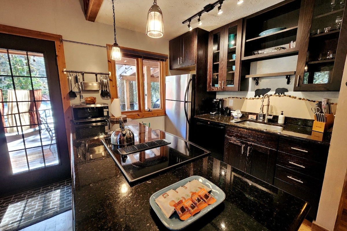 Relájate y desconecta en nuestra cabaña única construida a medida. La cabaña está enclavada en una colina boscosa sobre nuestra cabaña principal. Se encuentra en 4 acres de terreno boscoso privado, que limita con el monte Bosque Nacional del Monte Hood. Una escapada perfecta para parejas que buscan pasar un fin de semana romántico en el bosque o una base para aquellos que están aquí para disfrutar de todo lo que el monte Hood tiene para ofrecer. ¡Senderismo, pesca y esquí están a solo unos minutos!