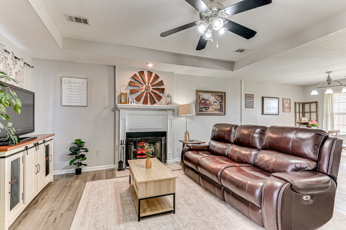 ¿Quieres la sensación de un hotel de lujo, pero la privacidad de tu propio hogar? Bienvenido a este oasis tranquilo equipado con un gimnasio en casa con cinta de correr, elíptica y mancuernas, y oficina con privacidad para los trabajadores remotos. Decorado con una decoración moderna, hermoso arte en todas partes y atención al detalle en cada espacio para tu comodidad. A menos de 10 minutos de Fort Gordon Gate 6, restaurantes, tiendas, atención médica y a 20 minutos del Augusta National Golf Club