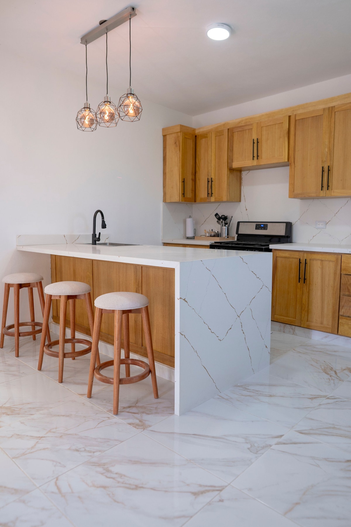 Modern 2-bedroom penthouse designed by renowned Dominican architects based in Boston, MA. Sleeps 6 with AC, spa-style bathroom, and open-concept kitchen, dining, and living room. Enjoy full privacy, stunning views from the rooftop terrace, and a laundry area for convenience. Located on the 4th level, this stylish space blends comfort, design, and tranquility—perfect for your getaway.