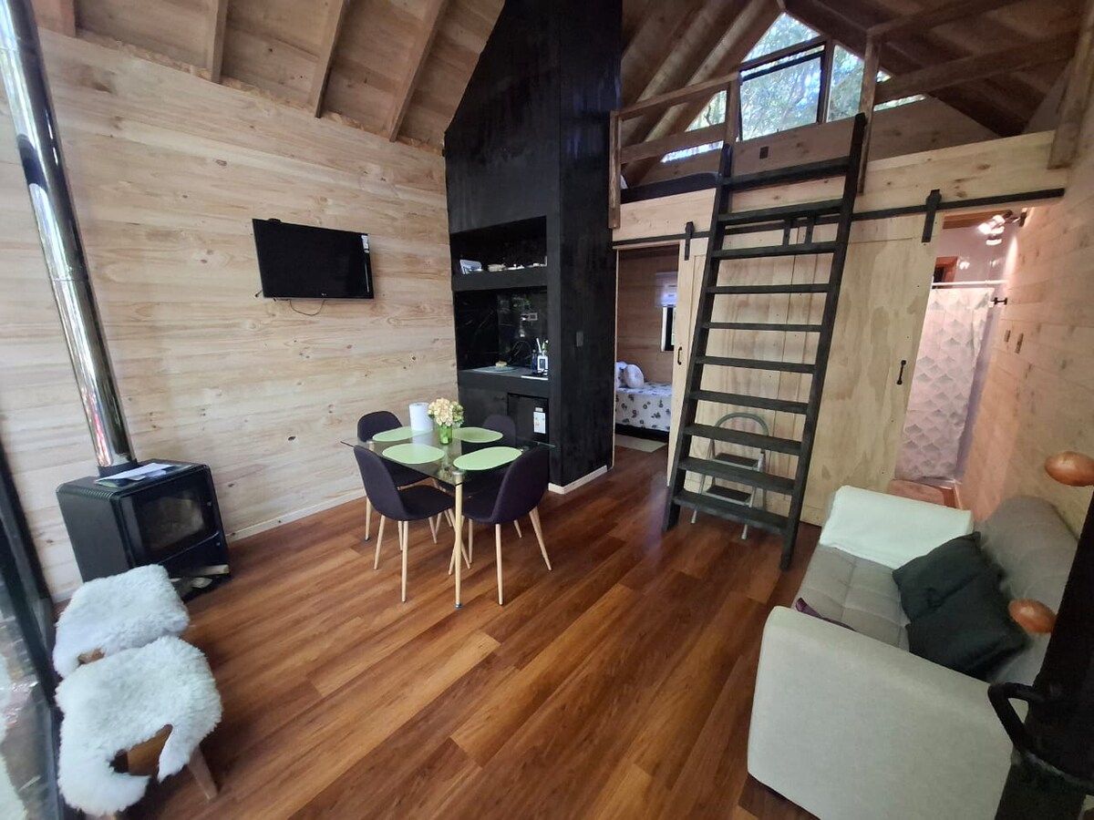 hermosa cabaña ubicada a la orilla del río, con bajada incluida donde podrán relajarse escuchando el sonido del agua, ademas mencionar que la cabaña esta completamente nueva y full equipada