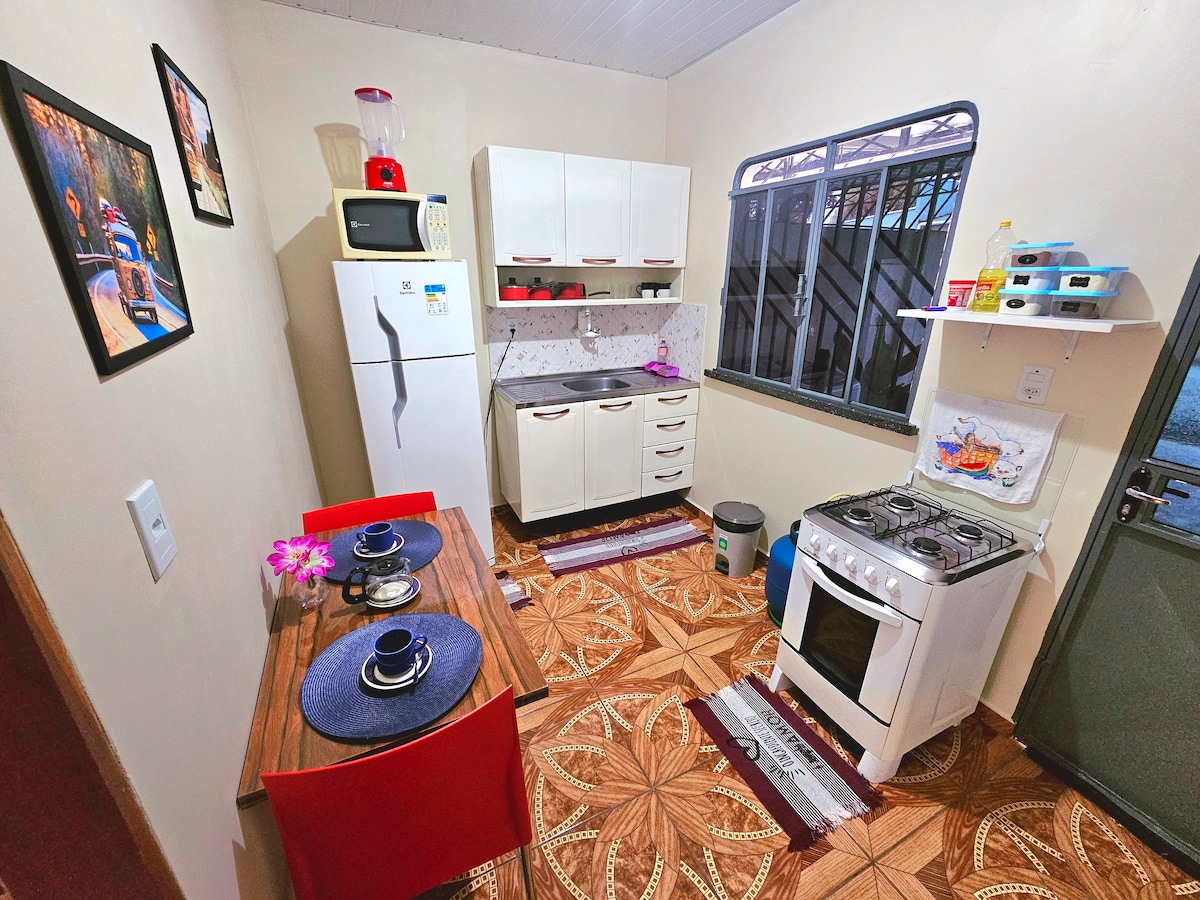 ¿Buscas un lugar tranquilo con buen alojamiento y una gran relación calidad-precio? Aquí tenemos un excelente espacio. Seguro, tranquilo, funcional, organizado, limpio, por no hablar de que todo está CLIMATIZADO. Cocina súper completa, equipada con nevera, congelador, airfryer, microondas, cocina con horno, batidora, todos los utensilios de cocina necesarios para hacer una deliciosa receta. Las habitaciones y la sala de estar cuentan con unidades de aire acondicionado, lo que hace que el clima sea aún más agradable.