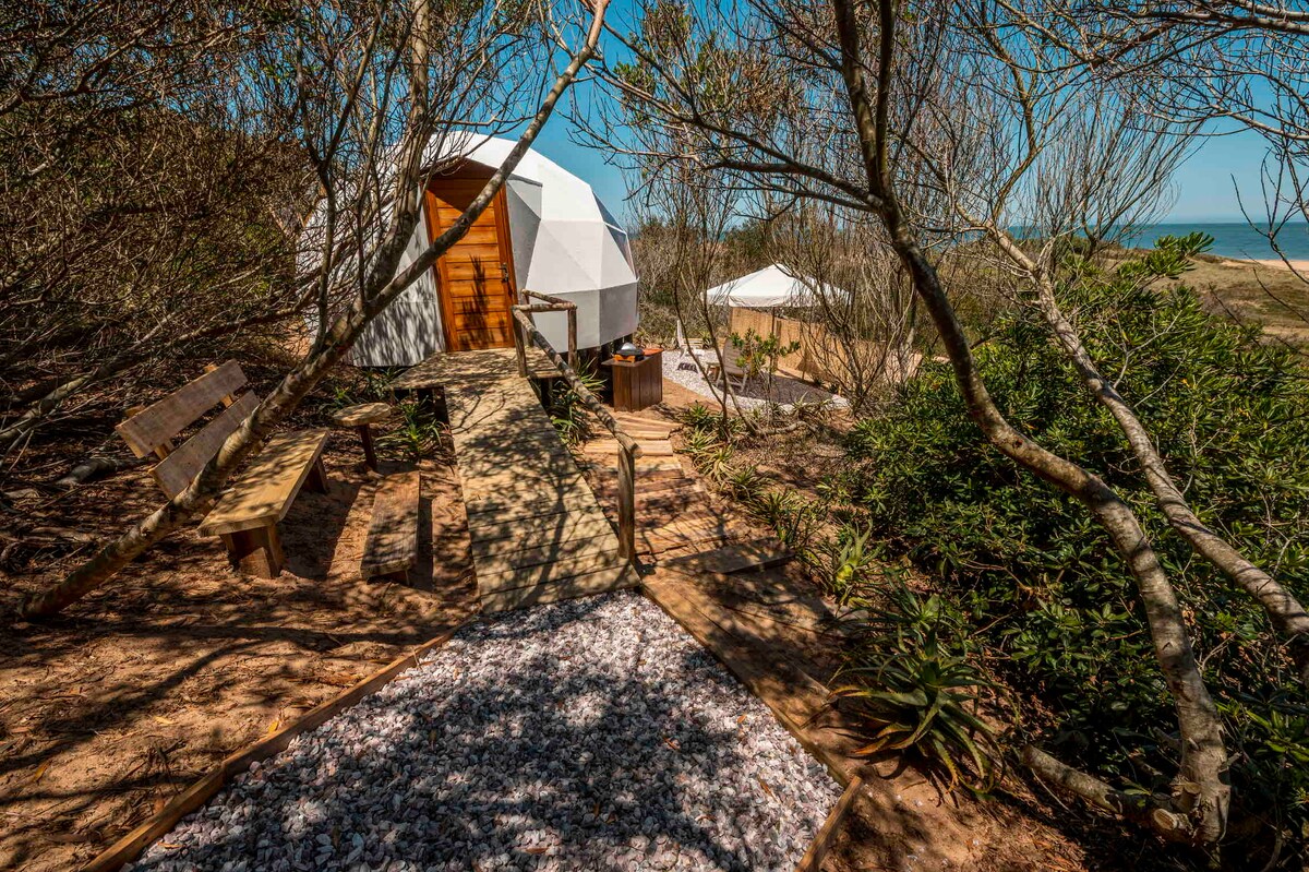 A pasos de la playa, nuestros Domos Geodésicos de madera ofrecen una experiencia única donde la naturaleza es el principal lujo. No somos un hotel tradicional: aquí la comodidad es simple y auténtica, sin servicios clásicos ni lujos formales. El sonido del mar, las dunas y el cielo abierto son nuestros verdaderos amenities. Un refugio cálido para desconectar y vivir el entorno, a solo 10 minutos de Punta del Este.