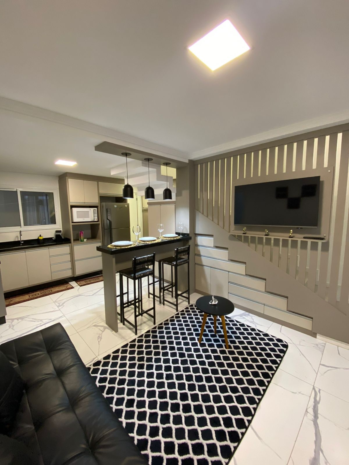 Chalet totalmente equipado en Río Negro/PR, ideal para quienes buscan comodidad, privacidad y funcionalidad. Diseñada para parejas, familias y grupos pequeños, la propiedad cuenta con aire acondicionado, cocina totalmente equipada, sala de estar en la planta superior, comedor, sala de televisión en la planta baja, baño completo, dormitorio doble y un dormitorio en la planta superior con cama nido. Cuenta con balcones, estacionamiento y fácil acceso al centro de Río Negro y a la ciudad de Mafra/SC.