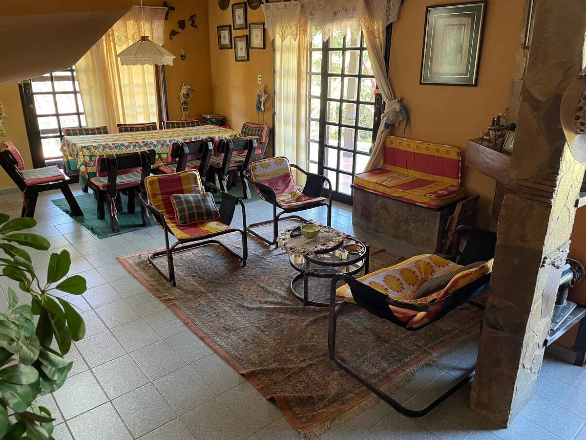 Casa quinta ideal para relajarse y festejar con amigos y familia. Tiene jardines, árboles y una mezcla de encanto rústico y comodidades modernas. Las áreas comunes son enormes, con muebles que invitan al relax y vistas espectaculares de los valles. El inmueble es amplio, con caminitos que te conectan con la naturaleza. Las habitaciones son súper cómodas y decoradas con mucho cariño. ¡Te va a encantar!