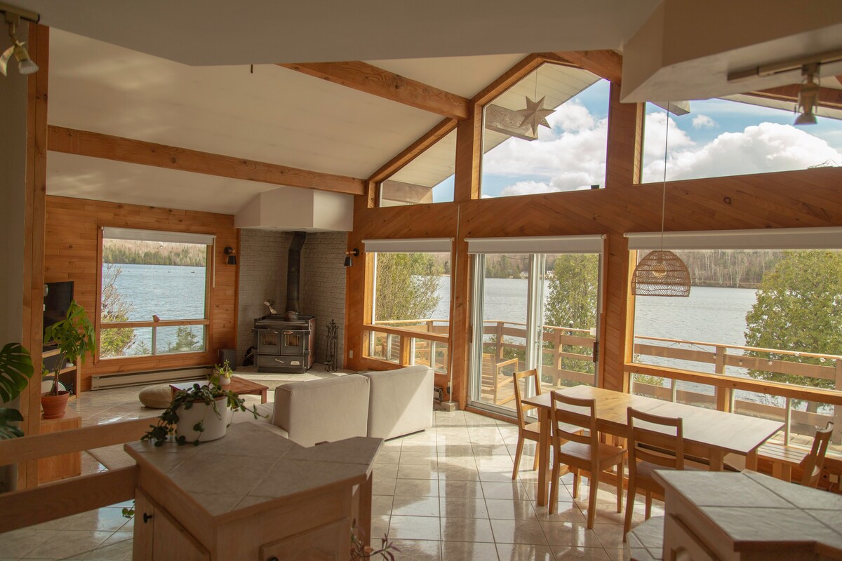 Superbe chalet bordé d'une magnifique plage sablonneuse. Le site est idéal pour décrocher et profiter de la nature et du lac . La maison pointe vers l'ouest ce qui vous offre des couchés de soleil magnifique. Pour les amants de la pêche, un débarcadère à bateau est tout près et les truites seront au rendez-vous. Le chalet est à proximité(10km) d'une épicerie, d'une boulangerie et de restaurants. Une station service est présente pour faire le plein. NOUVEAU, nous avons un spa flambant neuf!