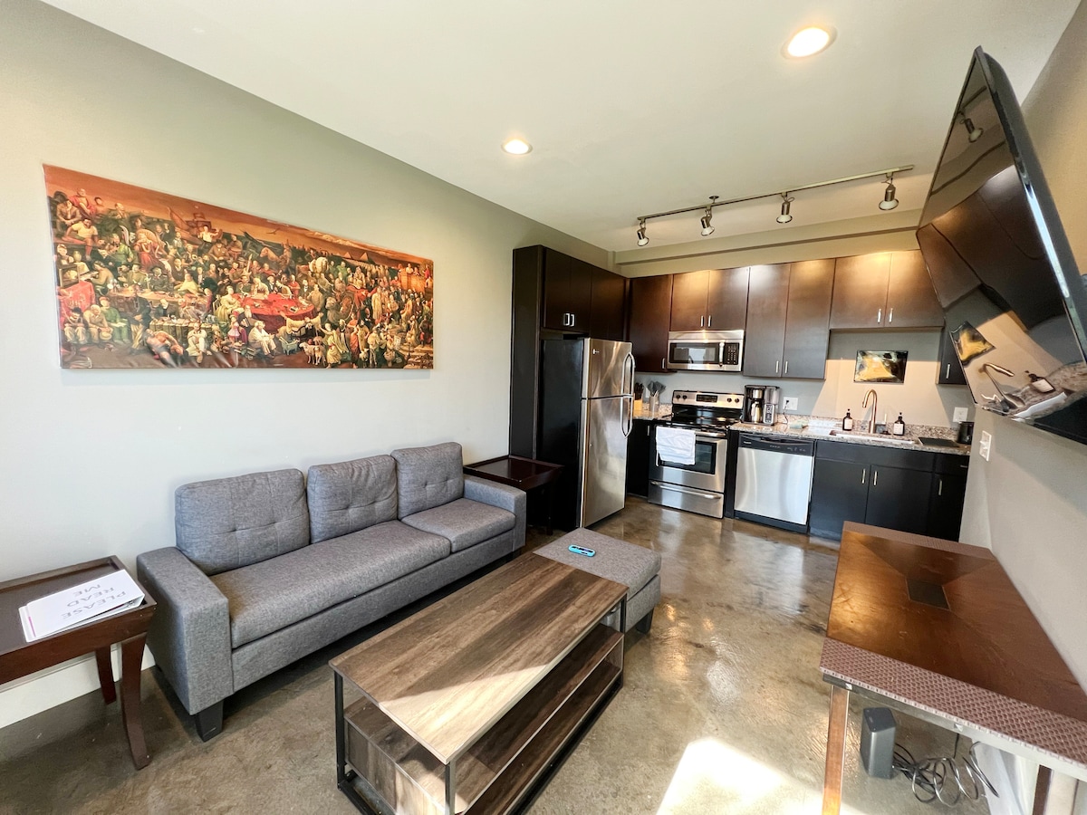 Entra en la comodidad de este lujoso apartamento de 1 dormitorio y 1 baño, que forma parte de la prominente residencia West End Flats, enclavada en el corazón de Roanoke, VA. Un refugio relajante en una ubicación privilegiada, que te permite explorar toda la bulliciosa zona del centro y todas sus atracciones a pie. ✔ APARCAMIENTO GRATUITO Cama ✔ tamaño queen con colchón de espuma viscoelástica. ¡✔ CERVECERÍA EN EL RECINTO! Salón de diseño✔ abierto. Cocina ✔ Totalmente Equipada Televisores ✔ inteligentes. Wifi de✔ alta velocidad (100 MB) Servicios ✔ comunitarios (barbacoa, patio, zona vallada para perros) ¡Ver más a continuación!