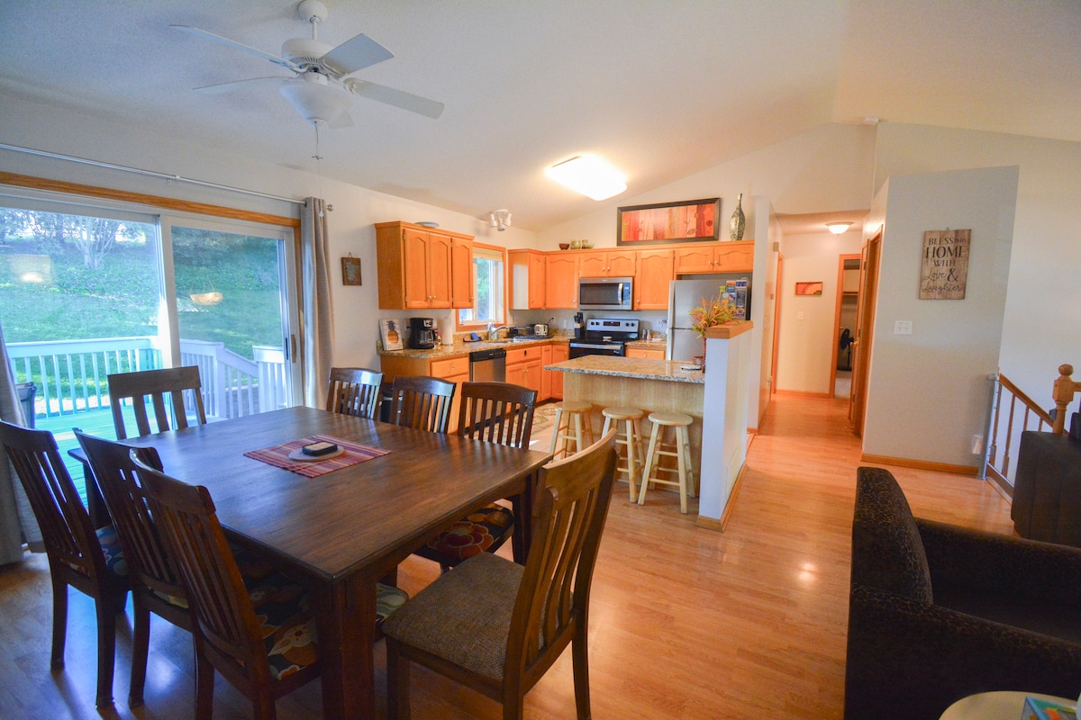 Vida de un nivel/sin escaleras. 2 dormitorios con 3 camas Un lado de una casa dúplex: 1200 pies cuadrados con tu propia entrada privada, aparcamiento, lavandería, cocina... A 2,5 millas de Mayo, Target, Hyvee, gasolineras... Casa totalmente amueblada. Smart TV y nevera con internet superrápido y Netflix incluidos. Cerradura con teclado para un fácil acceso autónomo. A unas manzanas de la parada de autobús. Interior moderno y espacioso. Cocina totalmente equipada con lavavajillas, ollas, sartenes y lavadora/secadora sin coste adicional. Chimenea y terraza privada. 3 plazas de aparcamiento.