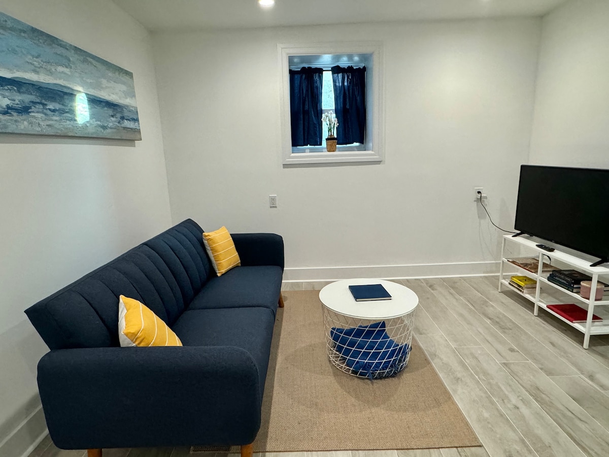 Esta suite de invitados tiene un dormitorio principal con cama tamaño queen y un rincón separado con una cama que se convierte en dos camas individuales. Está convenientemente ubicada a una manzana de la estación de tren LIRR. La playa y el paseo marítimo están a cuatro manzanas a pie y detrás de nuestra calle hay docenas de restaurantes, bares, cafeterías, tiendas de comestibles y farmacias. Estamos disponibles cuando quieras, para garantizar una estancia agradable y relajante.