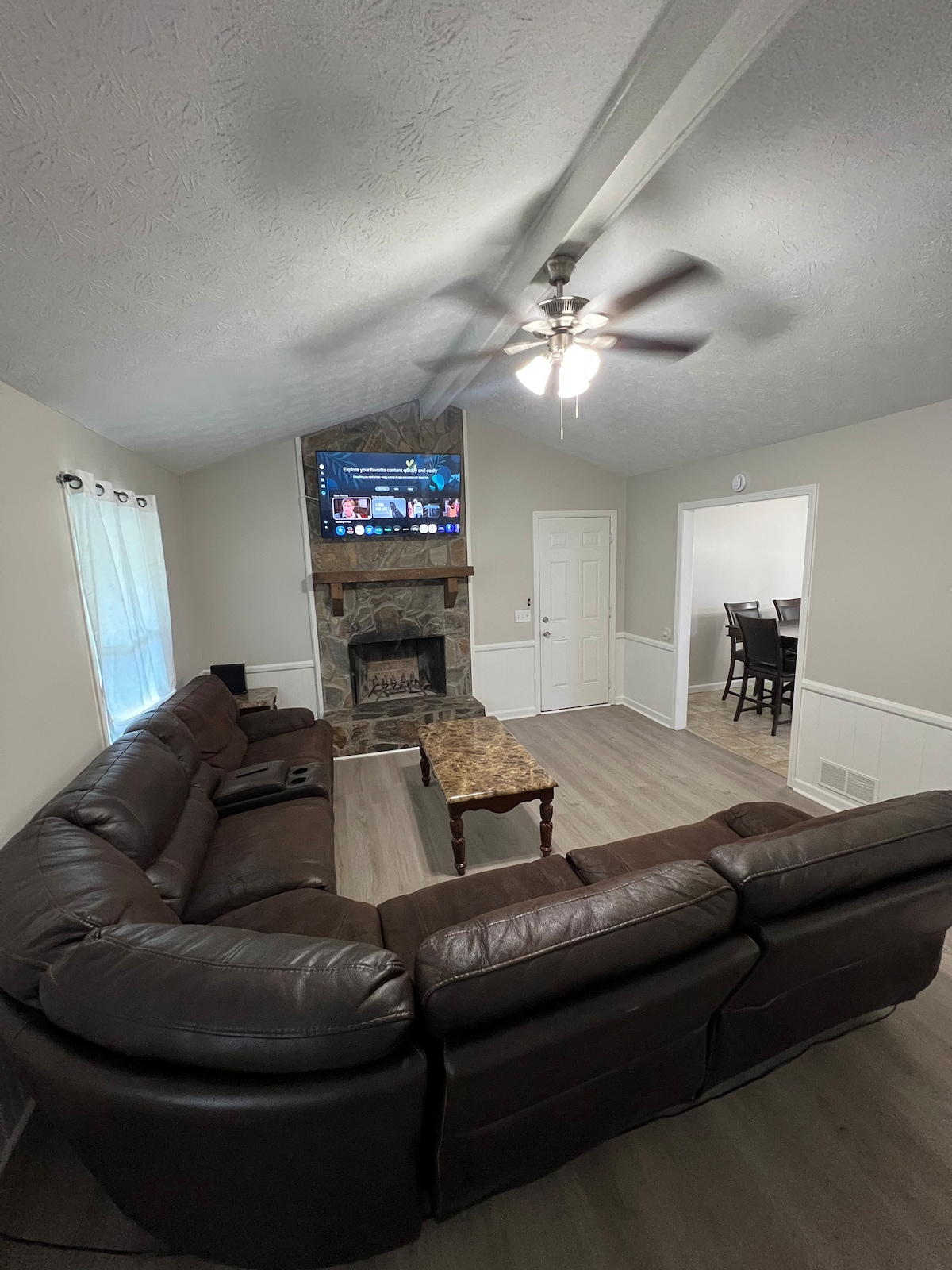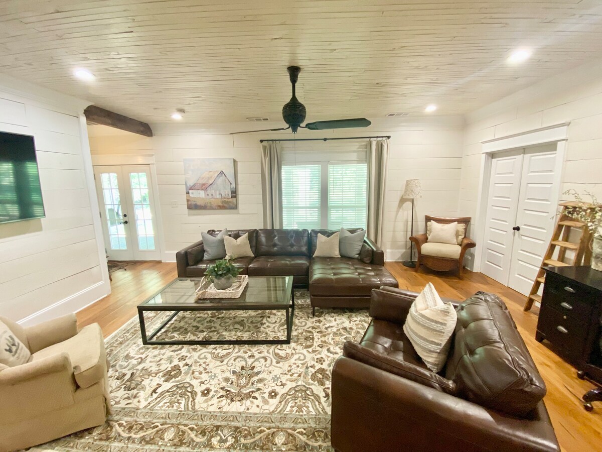 Bienvenido a Old Mill Farmhouse, donde el encanto histórico se une a la comodidad moderna a pocos minutos del centro de McDonough. Cada dormitorio tiene su propio televisor, e incluso el baño principal cuenta con un televisor para la máxima relajación. Disfruta de acogedores espacios habitables, una cocina totalmente equipada, estufa de gas, Wi-Fi rápido y un acogedor porche con mecedoras perfectas para familias, parejas y grupos pequeños. Una estancia cálida y acogedora a la que querrás volver una y otra vez. Cerca de tiendas, restaurantes, parques y eventos locales durante todo el año.