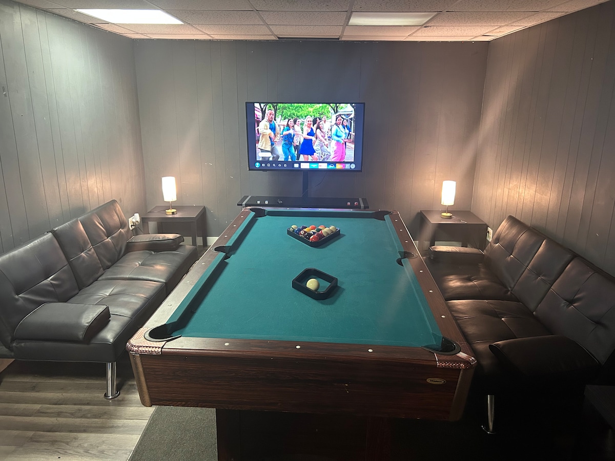 ¡Bienvenido a nuestro espacioso y acogedor refugio estilo cabaña, perfecto tanto para la relajación como para el entretenimiento! Disfruta de la amplia y acogedora sala de estar, saborea comidas caseras en nuestra cocina totalmente equipada, completa con electrodomésticos modernos. Da rienda suelta a tu jugador interior en nuestra épica sala de juegos o deja que los niños exploren un mundo de diversión en el área de juegos dedicada. Mantente en forma en nuestro gimnasio en casa bien equipado, con equipos de primera categoría. ¿Necesitas trabajar? Disfruta de nuestra estación de trabajo dedicada para una concentración perfecta.