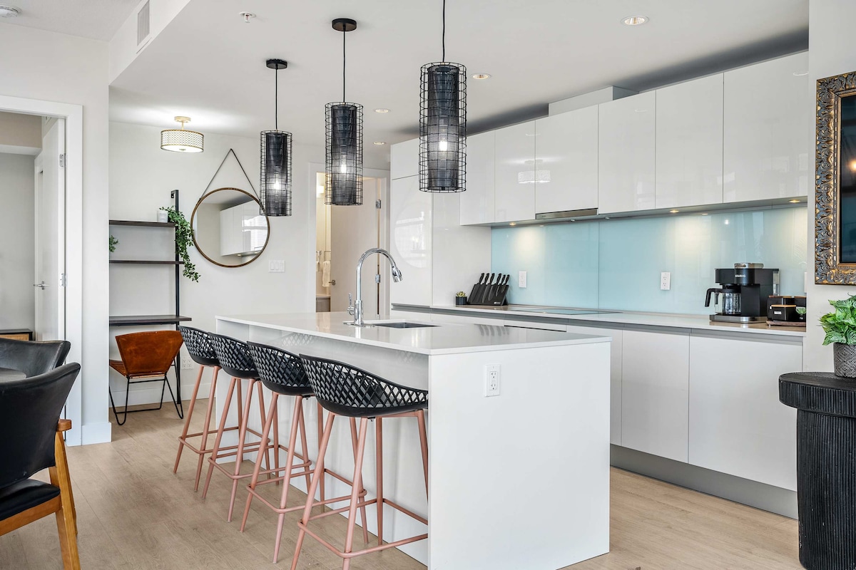 Aparcamiento subterráneo climatizado GRATUITO. Despiértate renovado bajo un mural bohemio con flecos en un acogedor escondite en el East Village de la ciudad, justo enfrente del parque Fort Calgary. Las encimeras de cuarzo y los azulejos de mosaico se combinan con suelos de madera dura de ingeniería y una decoración gris tranquila.