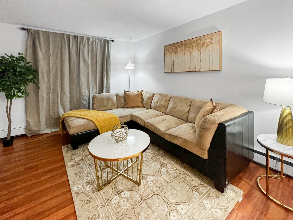 Mientras estés aquí, encontrarás una estancia elegante y privilegiada en el centro de Edmonton con estacionamiento subterráneo/climatizado/seguro gratuito incluido para 1 vehículo. Cerca del transporte público, Rogers Place, el centro comercial City Center, restaurantes, licorerías y River Valley. Internet Gigabit ultrarrápido. Aire acondicionado en la unidad. El condominio de estilo neoyorquino de 1 dormitorio, 2 camas completas (queen y doble), tiene todo lo que necesitas, incluyendo lavandería en la suite, Netflix, cocina completa con todos los elementos esenciales. ¡Incluye reloj de suscripción Sportnet engrasadores y juegos de los Jays!