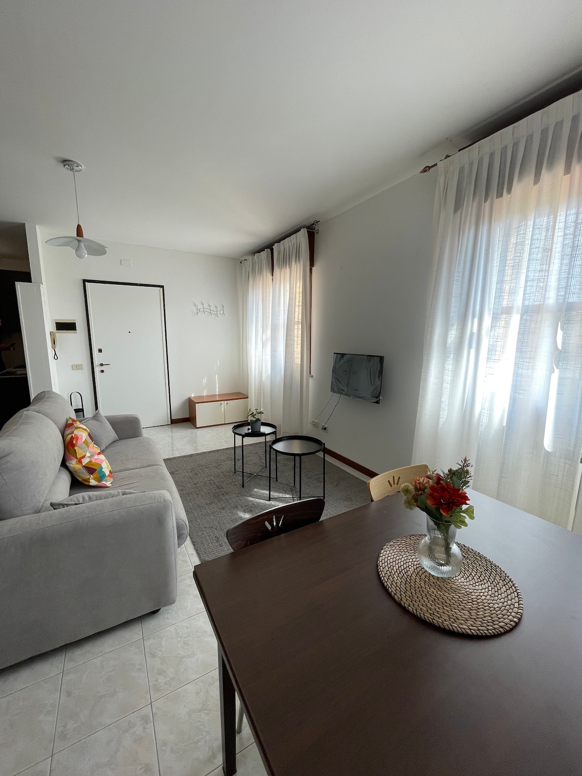 A solo dos minutos del centro comercial y de todos los servicios principales, incluidas las paradas de autobús, ofrecemos alojamiento con entrada independiente. El alojamiento está estratégicamente ubicado, a solo 5 minutos en auto del centro de Piacenza. El departamento consta de una sala de estar con un sofá cama doble, perfecto para alojar a dos personas, y un dormitorio con una cama doble. La propiedad tiene capacidad para cuatro personas y es adecuada tanto para parejas como para familias.